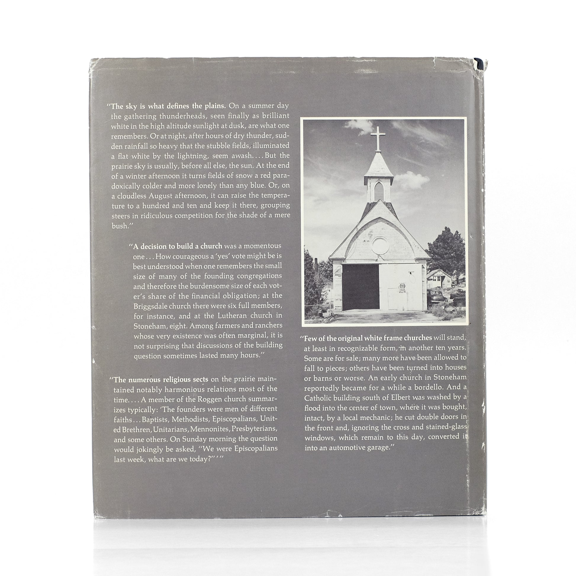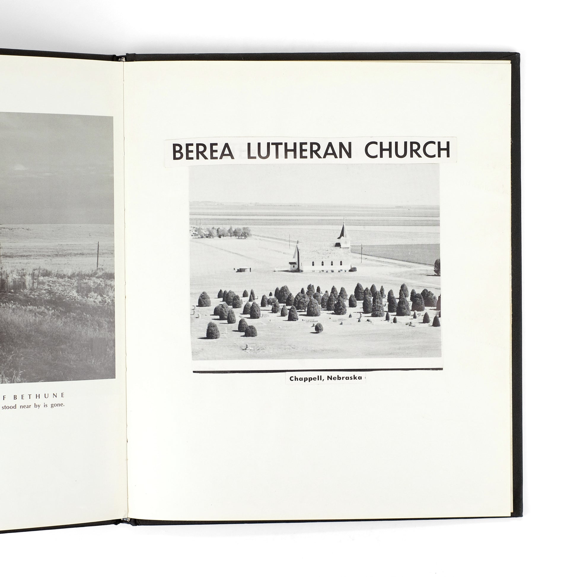 Debut book by American photographer Robert Adams (b. 1937), noted particularly for his extensive explorations of shifting western landscapes; black-and-white photographs of white wooden churches "built throughout the western high plains from Montana to Texas." With a foreword by Thomas Hornsby Ferril. This copy with a spirited if somewhat crude extra-illustration to rear endpaper courtesy of a former owner, who has augmented Adam's choice of churches by mounting a photograph of the Berea Lutheran Church in Chappell, Nebraska, apparently clipped from some other publicatino: a surprisingly coherent addition.
