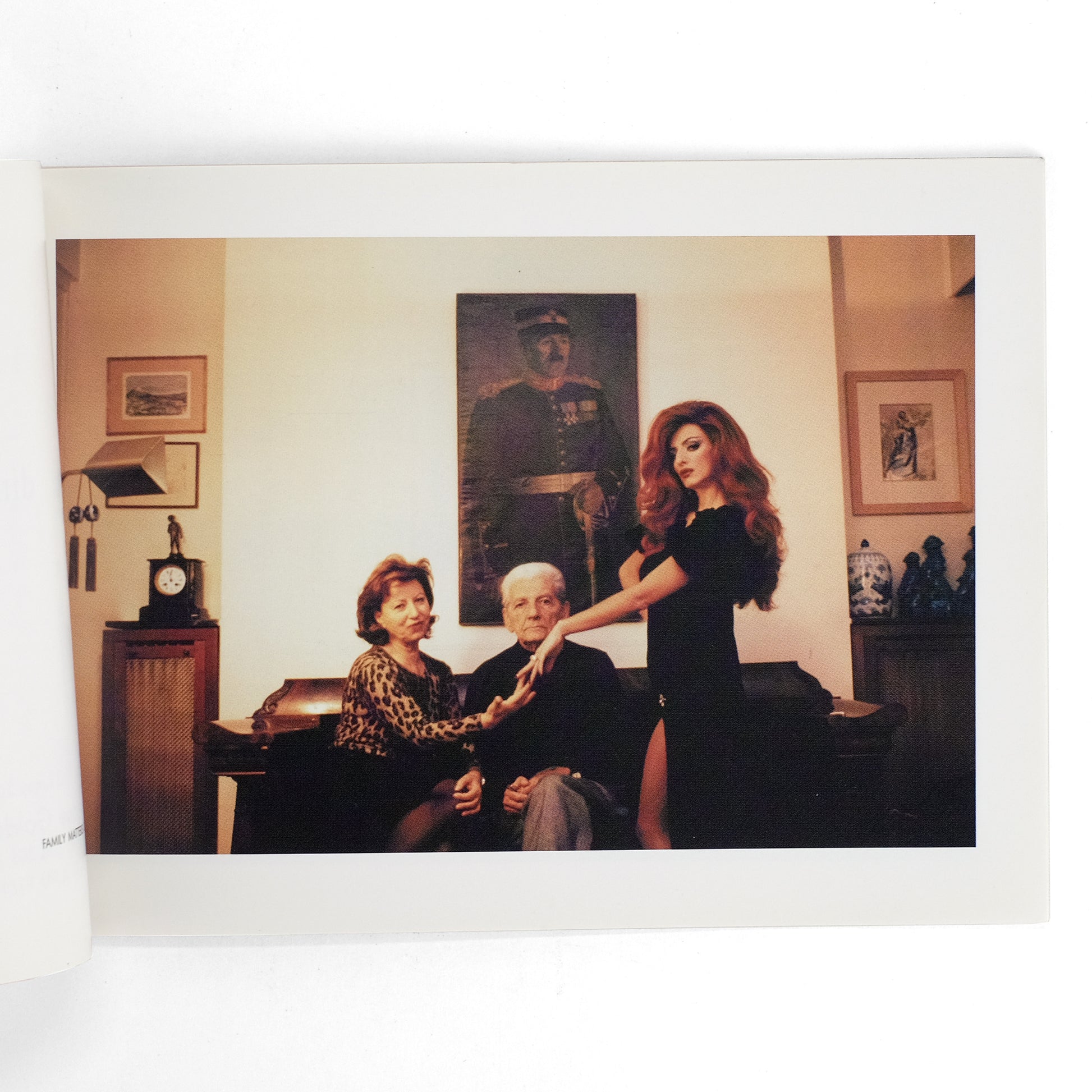 Color photographs of drag queens posing with family members in domestic environs, by Greek-born photographer Dimitrios Georges Antonitsis (b. 1966). With a chronology at rear, and afterword by Marina Fokidis. Published in conjunction with an exhibition of the same name at Monique Goldstrom Gallery and Riverrun Gallery. Despite its generous edition size, a scarce publication in the trade, and one for which OCLC locates no institutional holdings.