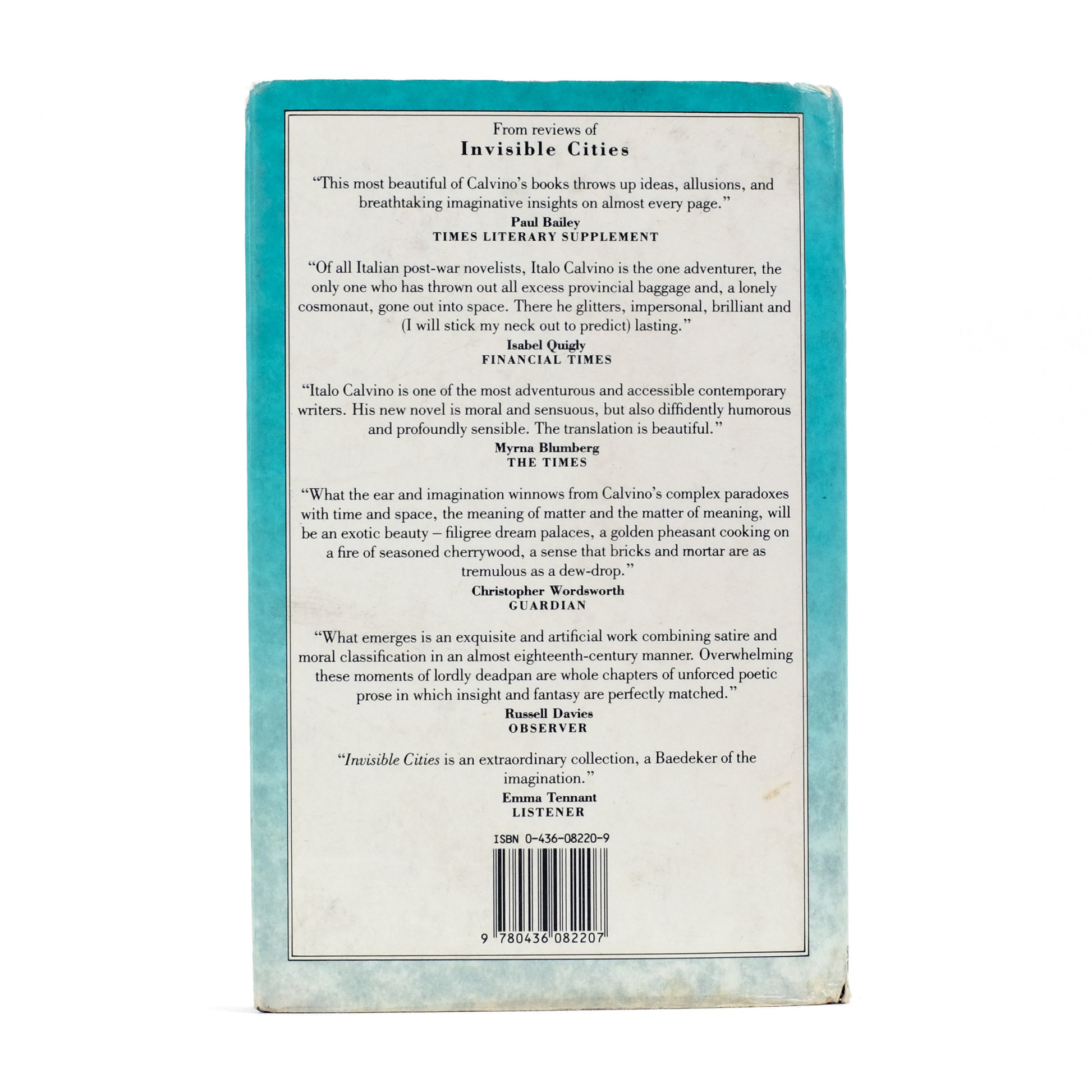 Hardcover reprint of this high point by Italian writer Italo Calvino (1923-1985), a series of prose vignettes of imaginary cities, as narrated by Marco Polo to Kublai Khan. This English-language translation by William Weaver first published in 1974.