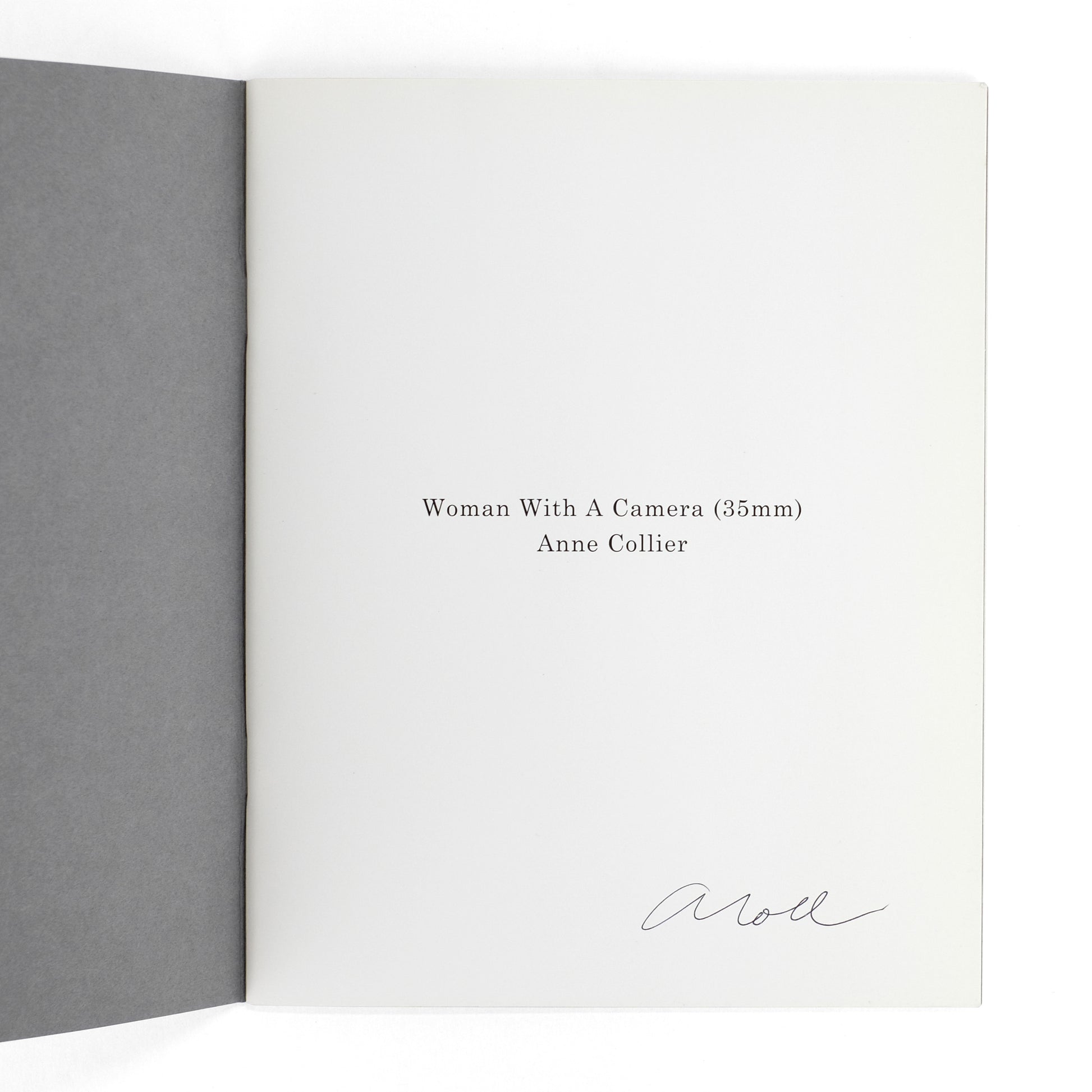 Artist's book consisting of "eighteen frames from the film trailer for Eyes of Laura Mars (1978, dir. Irvin Kershner)," featuring actress Faye Dunaway holding a camera. Essay at rear by Tom McDonough. American artist Anne Collier (b. 1970) is noted particularly for her utilization of appropriated photo-images featuring objectified female subjects, including several series of women holding cameras, as here. Her work has been widely collected and exhibited, including at the Whitney, the Museum of Contemporary Art, Chicago, etc. OCLC 11 institutional holdings.