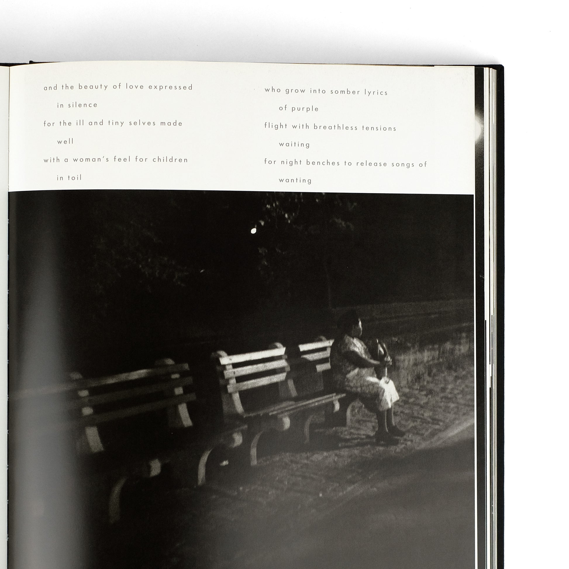 Black-and-white photographs of the 1950s New York jazz scene by photographer Roy DeCarava (1919-2009), accompanied by his running poetic text. This copy with nice additional association, bearing the gift inscriptions of trumpeter jazz Jimmy Owens and his wife Stephanie, who presented this copy to a "wonderful artist and friend" on his 70th birthday. Alas, we have been unable to confirm the identity of the recipient. Parr & Badger, v2, p. 19.