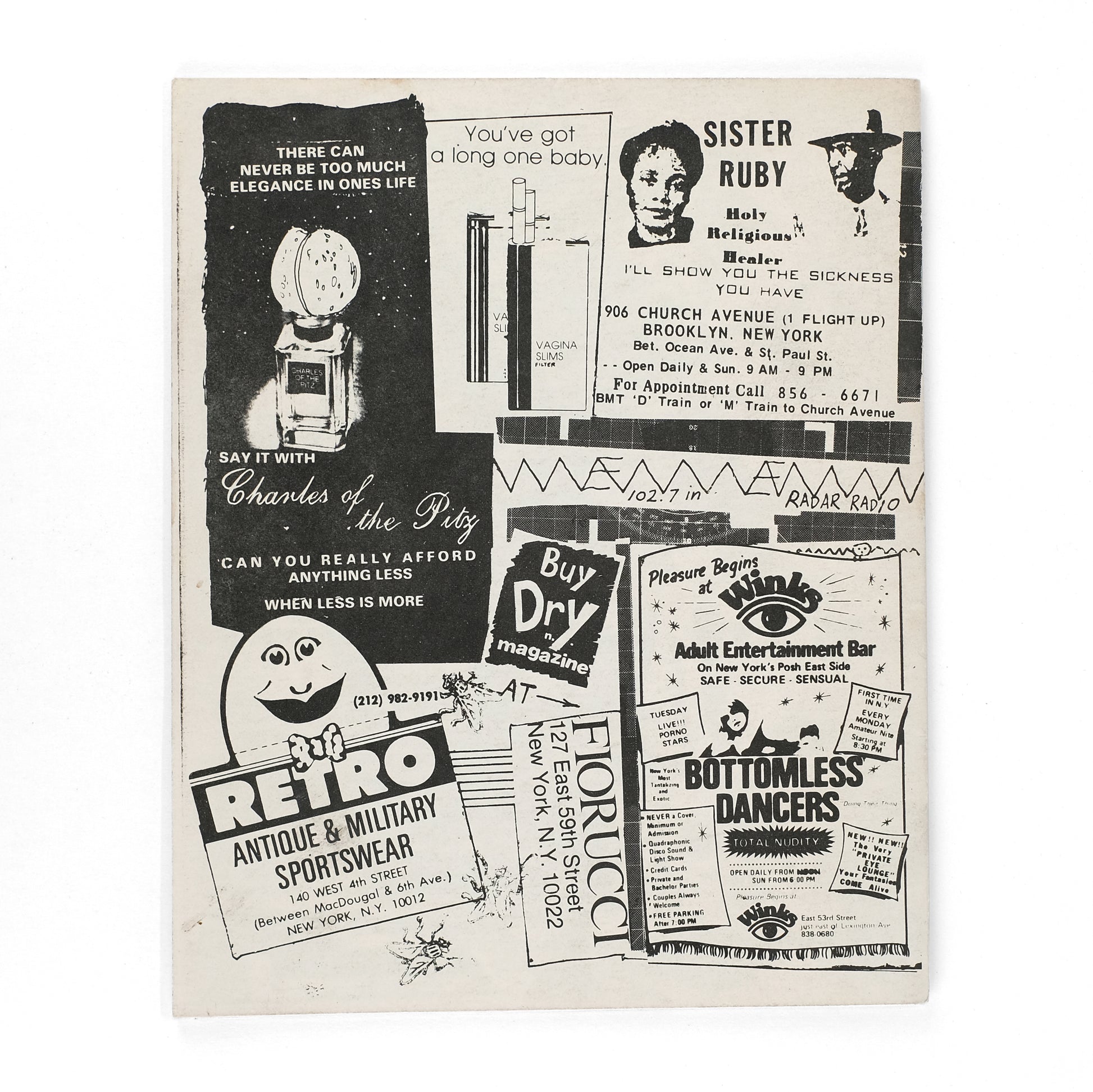 Brooklyn: Dry Magazine, [circa 1980]. [24]pp; b&w illus. Saddle-stapled in illustrated wraps. Near fine, with minor rubbing to covers.