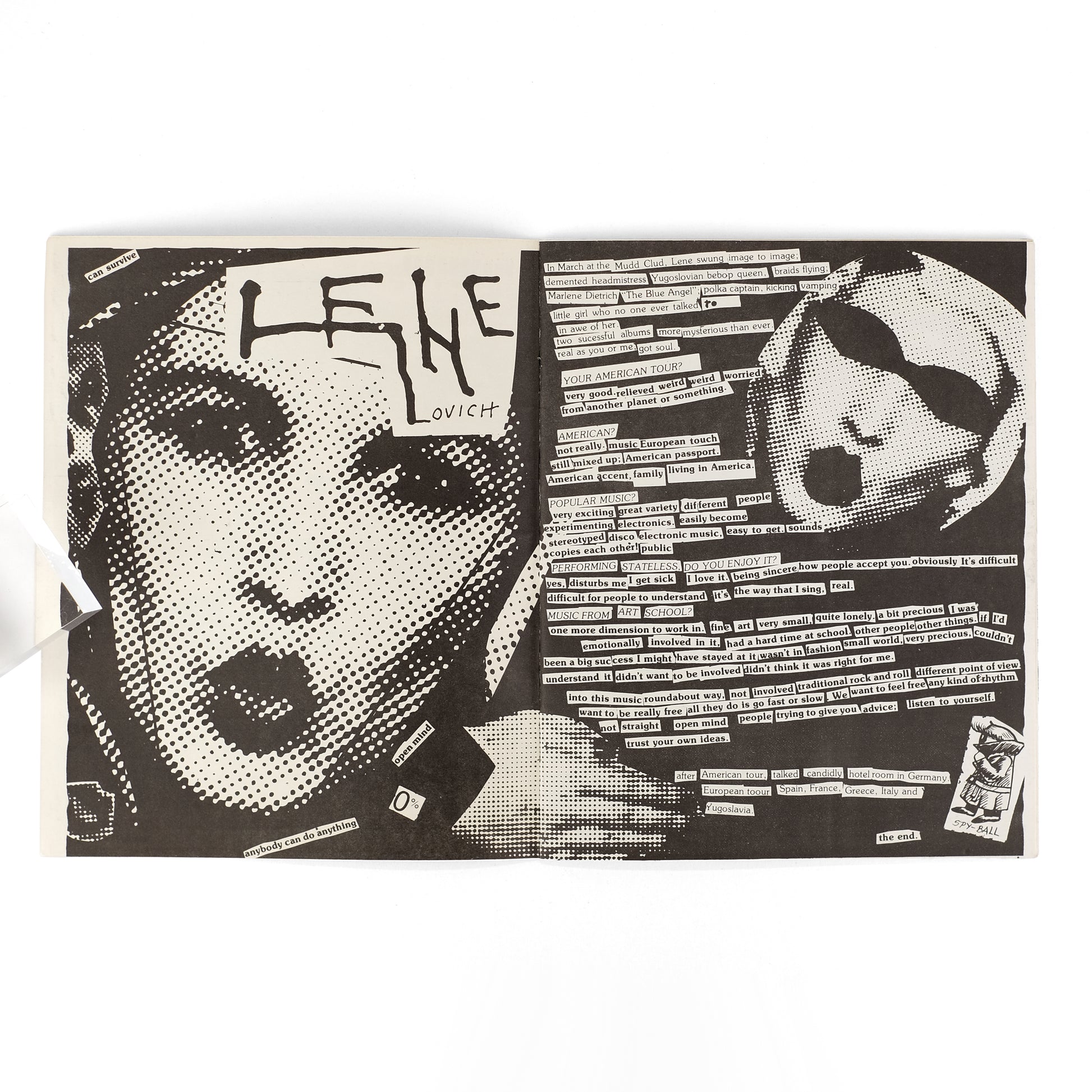 Fourth issue of this seminal New York punk/new wave zine. Contents here include an interview with Lene Lovich, a running column of diaristic show/nightlife reviews ("Confrontations"), an article about NYC rock radio, an interview (spurious?) with Penthouse founder Bob Guguzione, etc. As always, the artfully manic cut-and-paste layout is the star of the show.