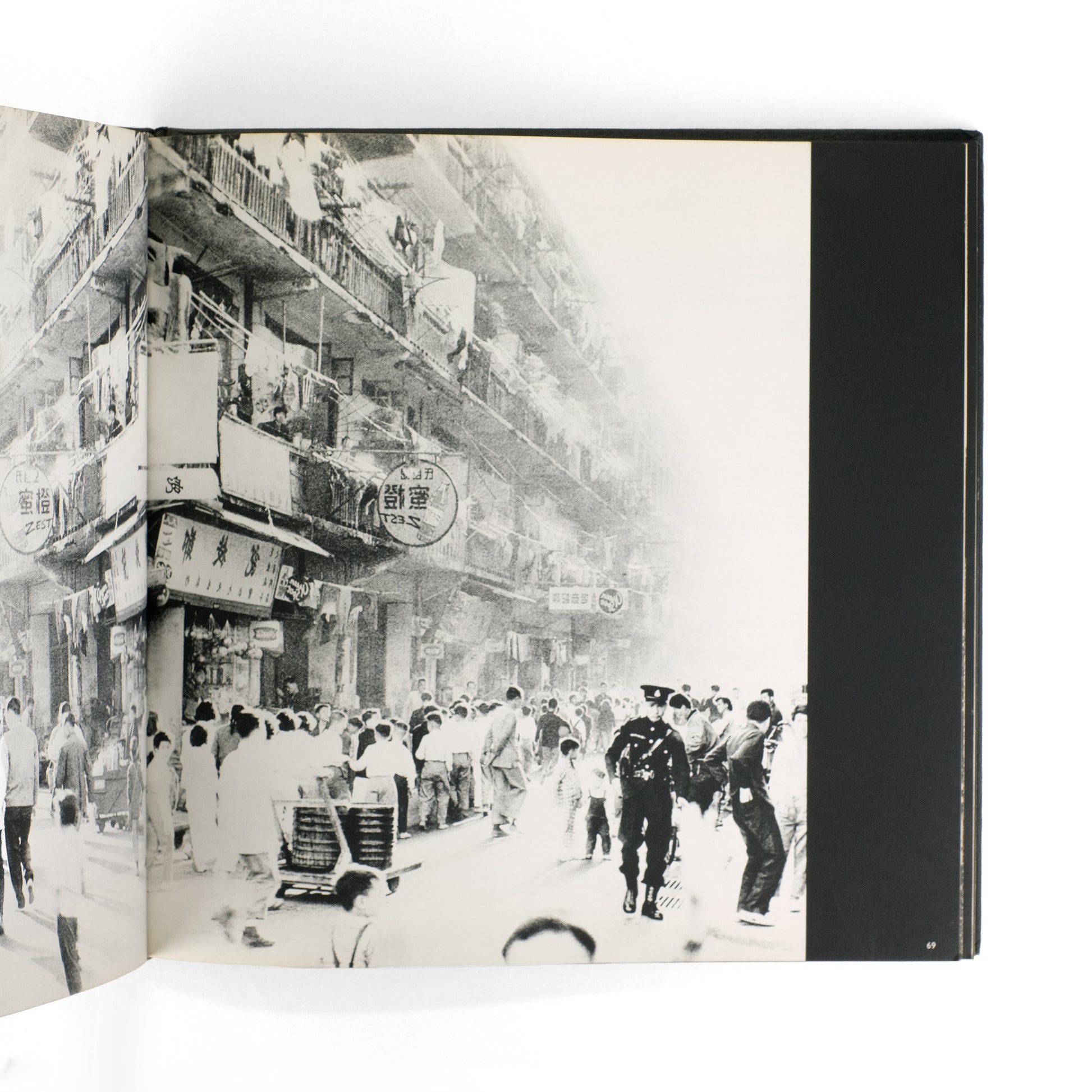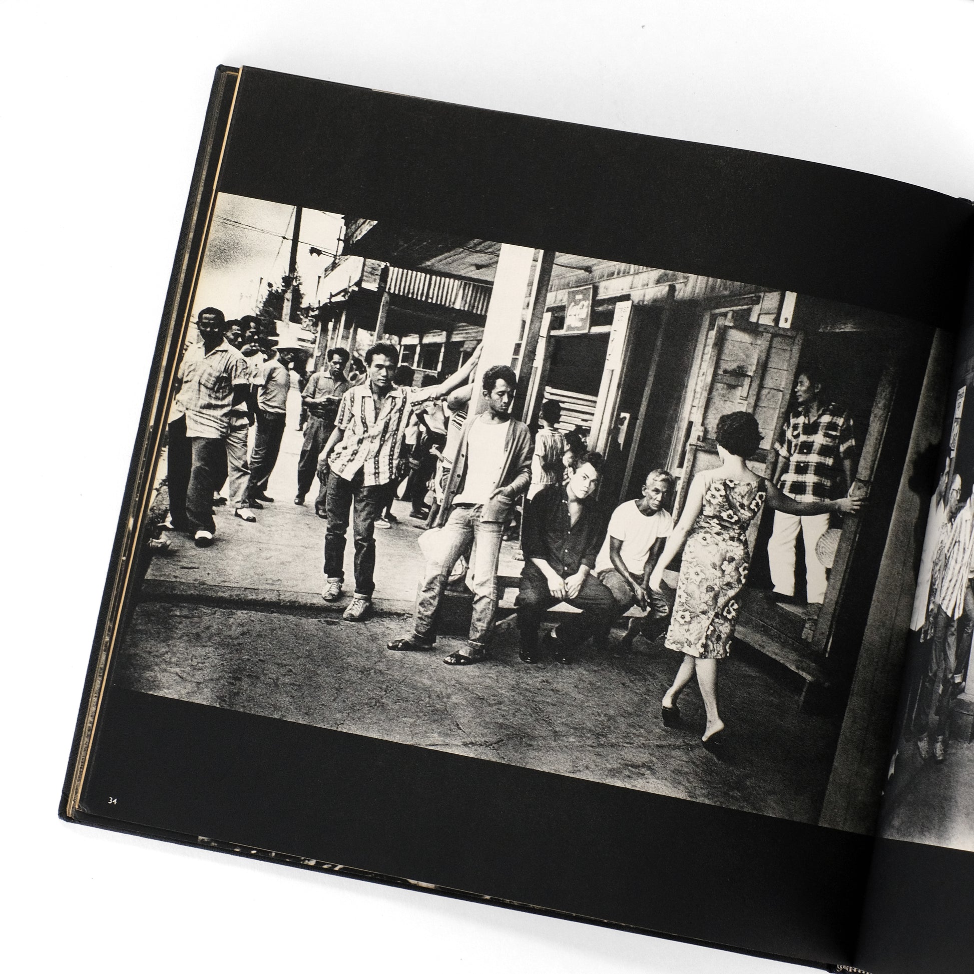 The American first edition of this collection of photographs shot while on a 14-month world trip by Dutch photographer Ed van der Elsken (1925-1990), who also orchestrated the book's striking design. With an introduction on brown paper stock, in which Elsken provides notes on each of the 179 black-and-white plates that follow, nicely printed in high-contrast gravure. An edgy and arresting body of work, with clear aesthetic affinities to Daido Moriyama and the Provoke movement soon to follow.