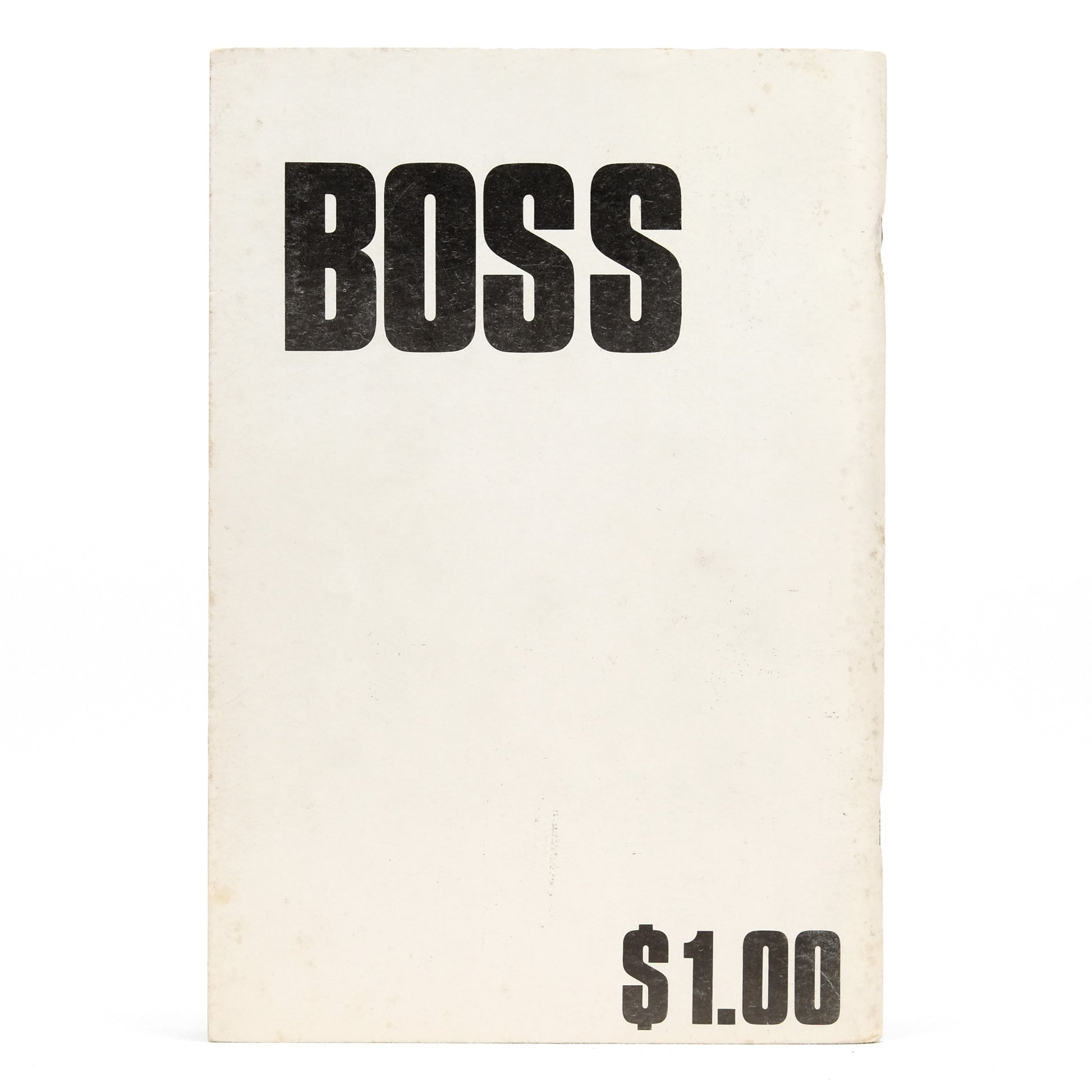 First of five total issues of this little magazine of poetry, prose, and film culture, edited and published by Reginald Gay. Contributors include Allen Ginsberg (a 12-page selection from his journals), John Wieners, Ed Sanders, Kirby Congdon, and Taylor Mead (a mainstay of Boss, here represented by a long excerpt from Anonymous Diary of a New York Youth, Volume 3). Illustrated with several photographs (including portraits of H. M. Koutoukas, Diane Di Prima, Jay Socin, and David Henderson) and two drawings by Minos Argyrakis. Front cover a photograph of The Living Theatre's production of Frankenstein, Venice 1965.