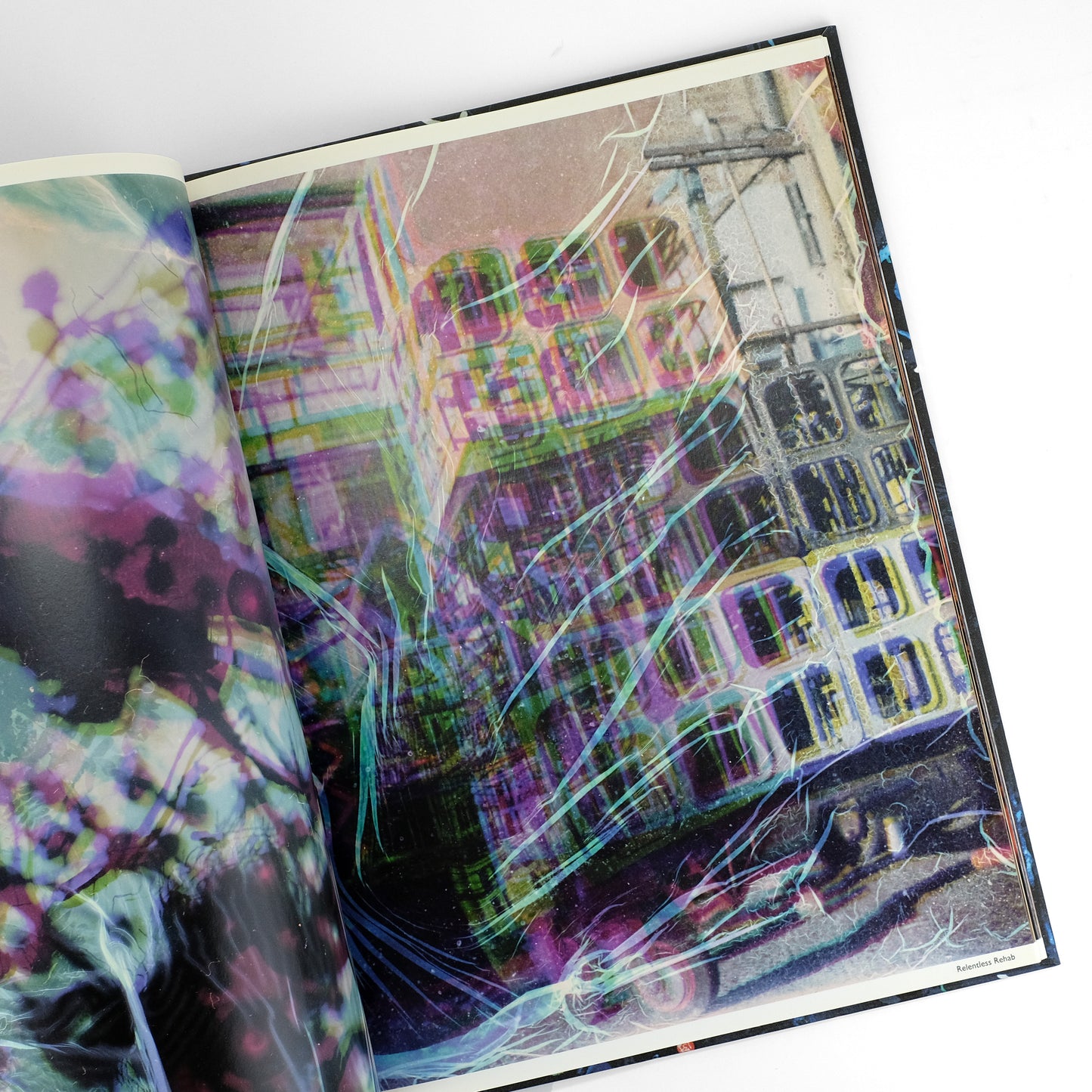 Striking series of color photographs whose negatives Gill treated with various energy drinks, resulting in unpredictable and frequently psychedelic disruptions to the images. Each plate titled at base with the name of the particular energy drink used in its creation. A compelling body of work, both aesthetically and as a commentary on the chemical mediations of contemporary life. Introduction by Will Self.