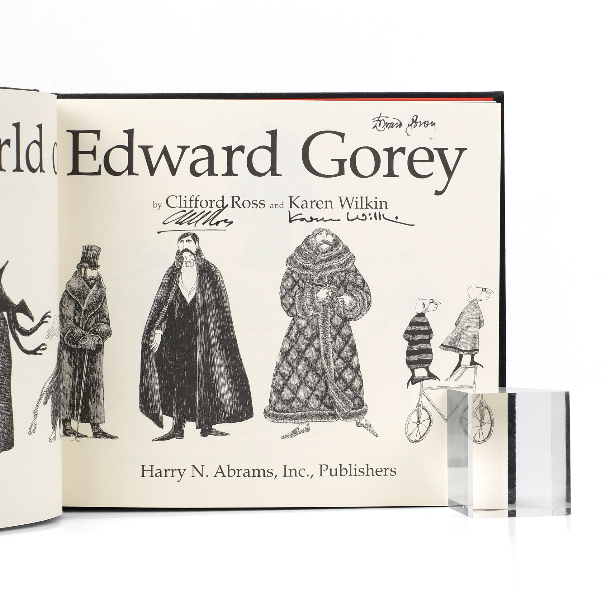 NY: Harry N. Abrams, 1996. First edition. 190pp; b&w and color illus. Oblong 8vo. Black cloth; dust jacket. About fine. Though not called for, this copy signed at title page by Gorey, Ross, and Wilkin.