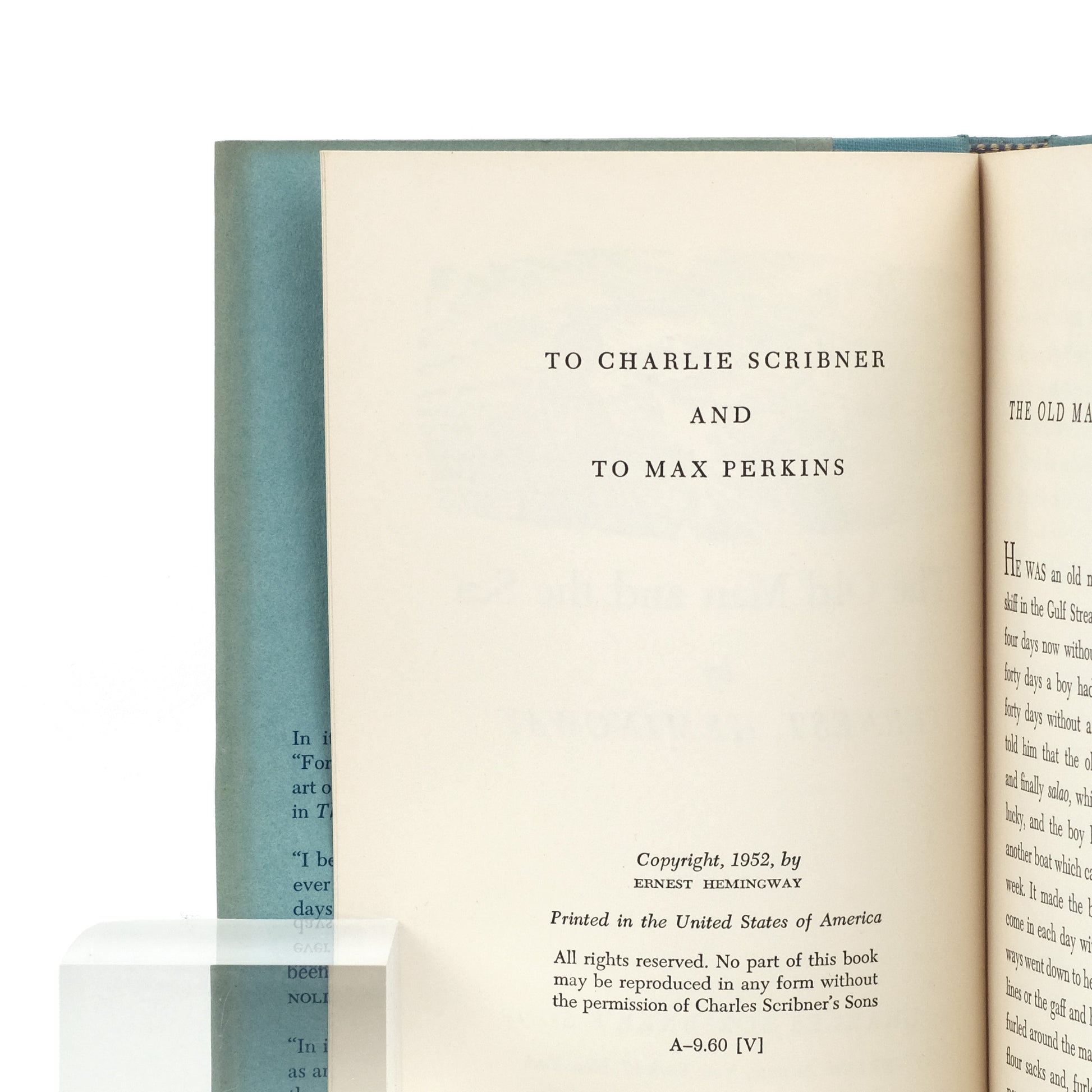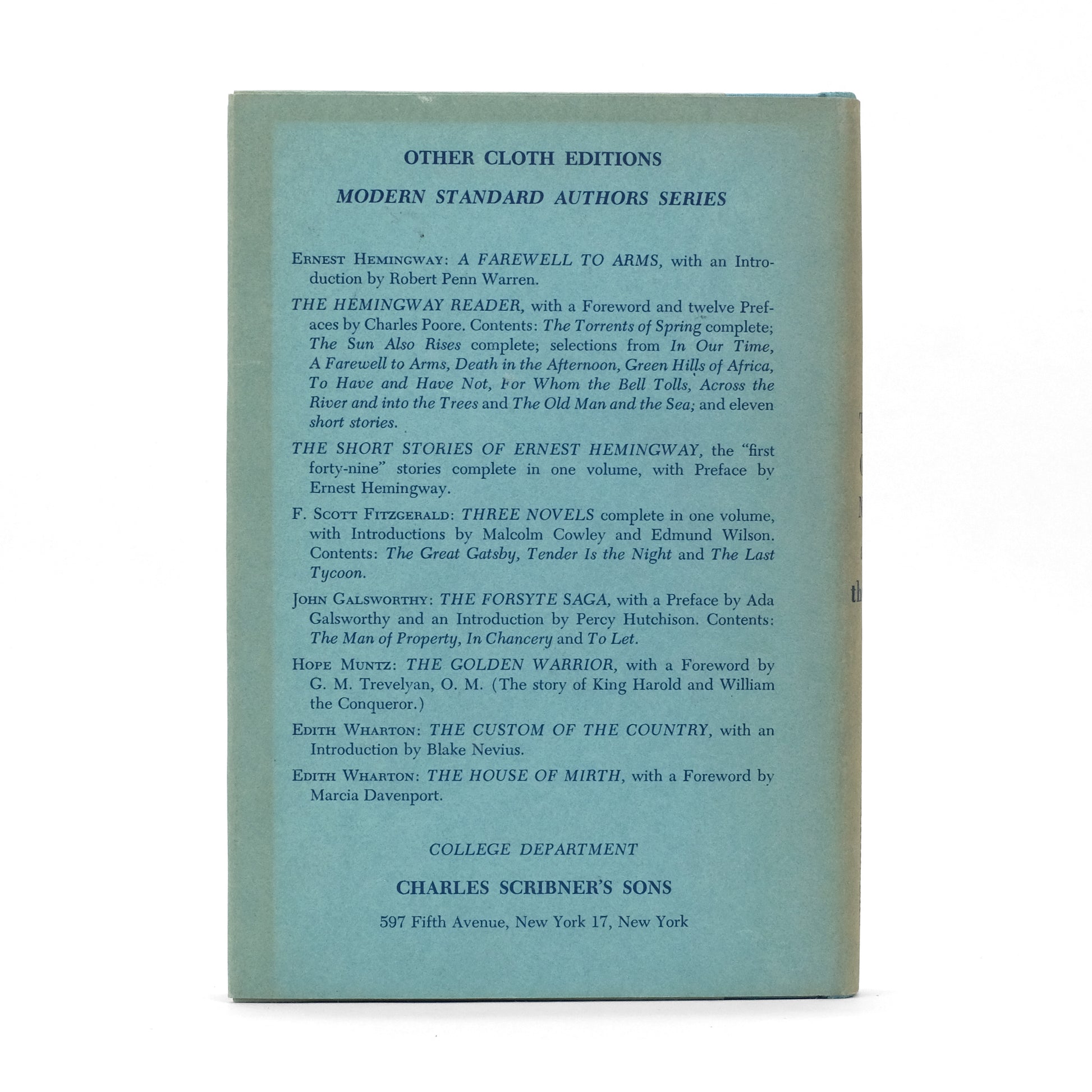 "Special Student's Edition" of Hemingway's celebrated 1952 novella, winner of the 1953 Pulitzer Prize for Fiction and cited specifically when he won the Nobel Prize in Literature in 1954. This edition reprinted several times; this the first printing, with correct "A-9.60 [V]" date code on copyright page. Save the jacket toning, a nice copy.