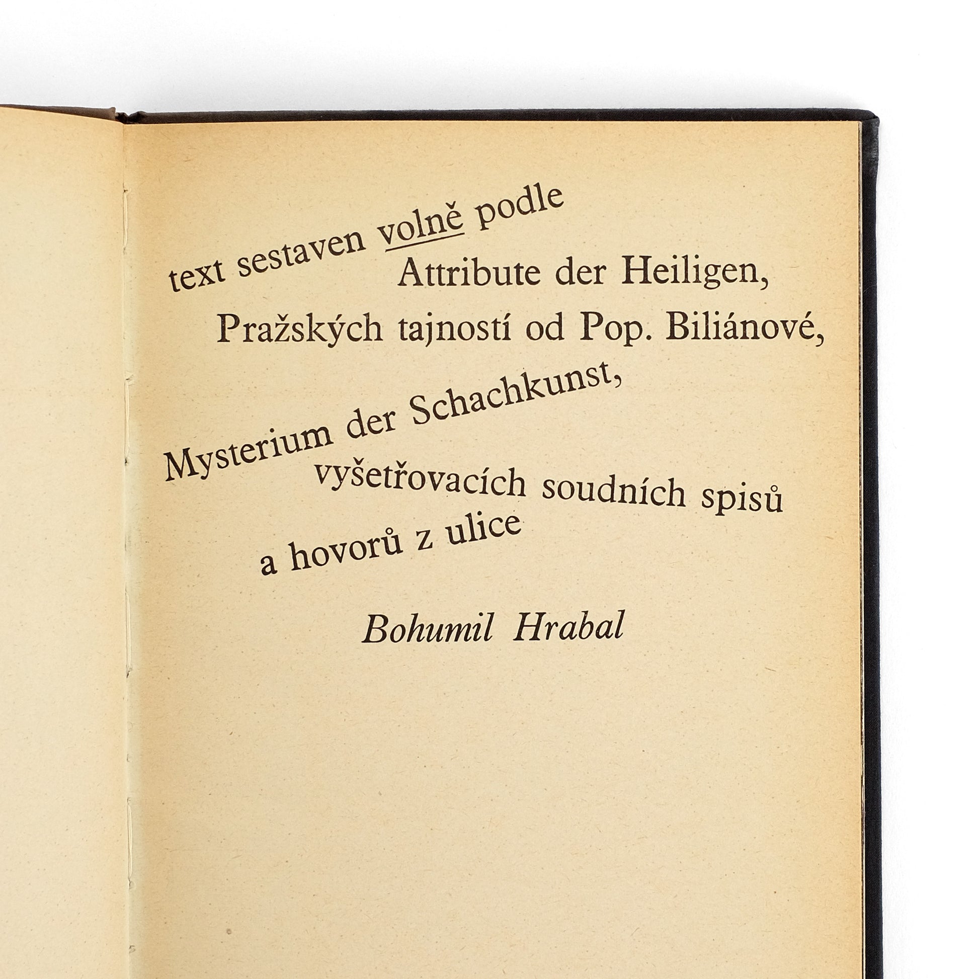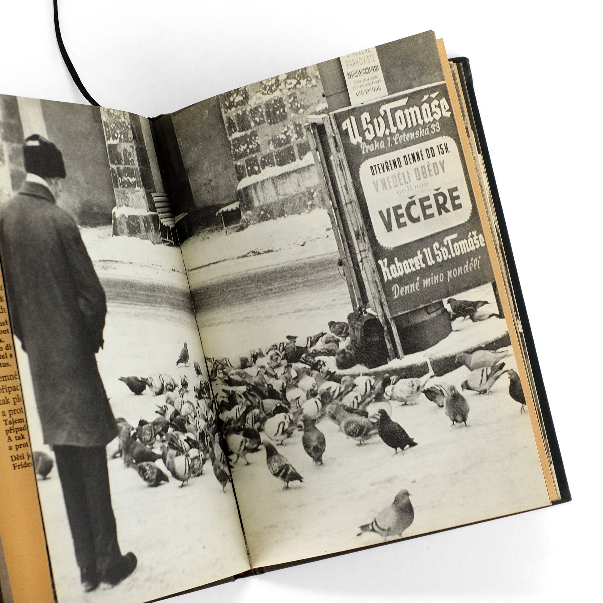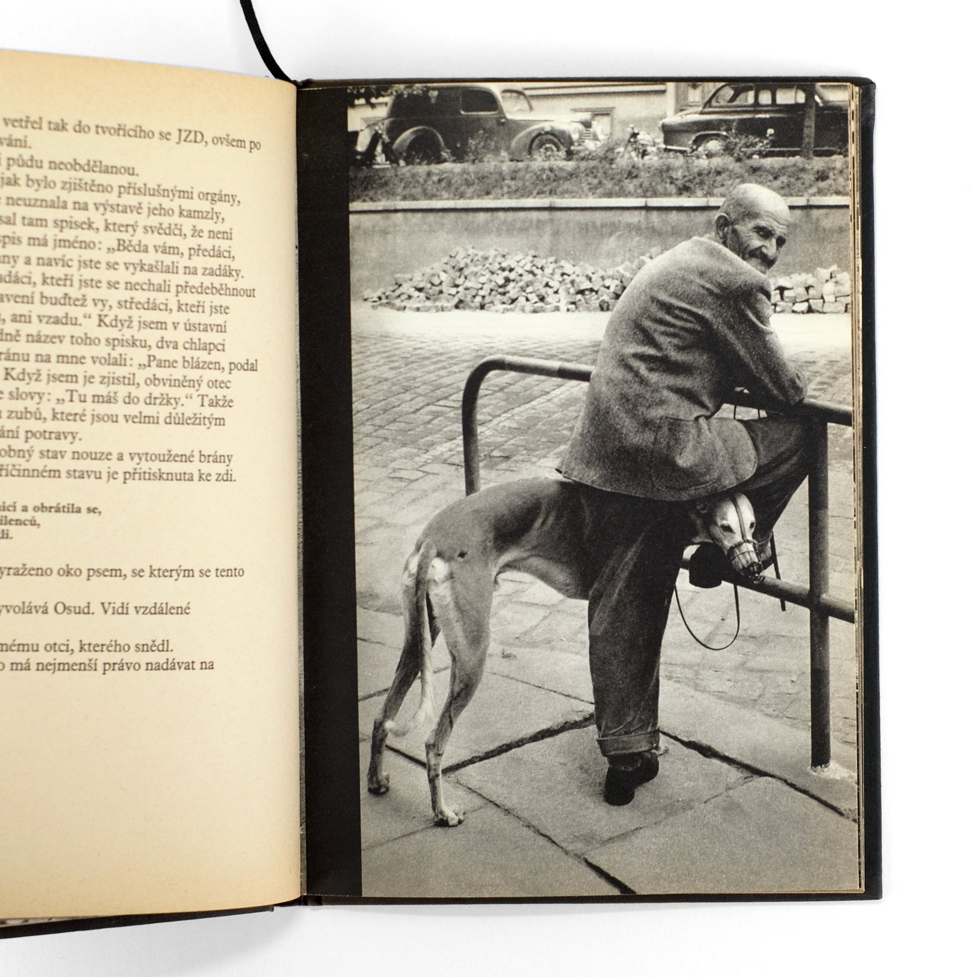 Collaborative work pairing a text by celebrated Czech writer Bohumil Hrabal (1914-1997) with 52 nicely done gravure photographs by Miroslav Peterka (1924-1990). An "urban meditation that uses photographic fragments, glimpses of the urban streetscape, to make a wider point about our political situation in the late twentieth century" (Parr & Badger, v. 1, pp. 222-223). Notably, Hrabal's work was banned following the Soviet Warsaw Pact invasion the following year.