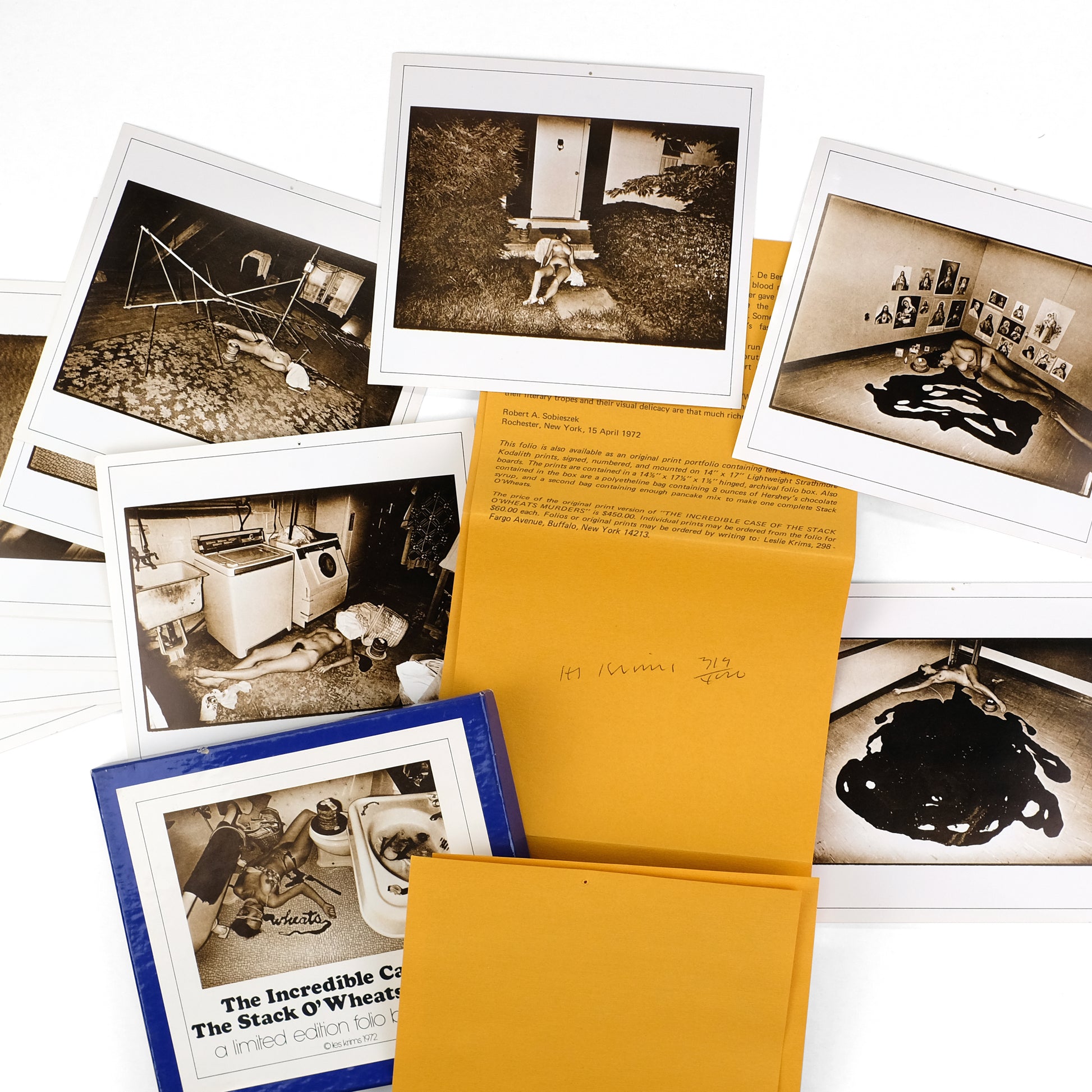 Buffalo: Les Krims, 1972. First edition. 10 5 x 5-5/8 inch photo plates, two long folded text sheets. Housed in hinged blue card box with mounted title plate. Plates and text sheets all with small pinholes at top edge, apparently from mounting. Else very good. No. 319 of 4,000 (or perhaps 4,020) copies signed and numbered by Krims to second text sheet.