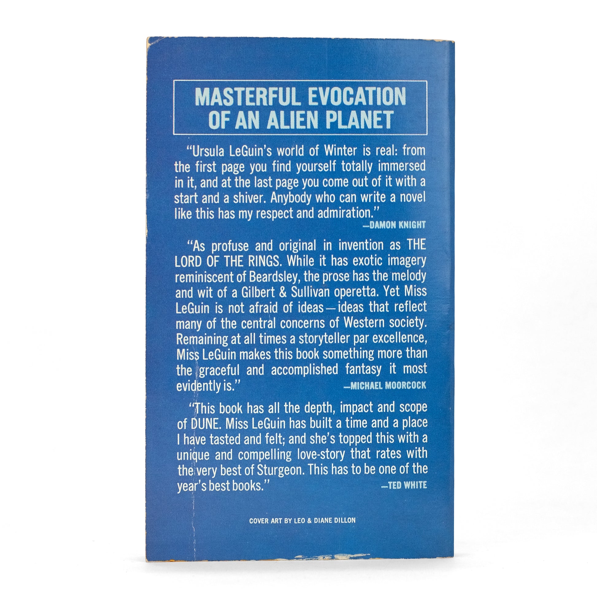 Attractive first printing of Le Guin's celebrated exploration of gender and religion, which would go on to win both the 1970 Hugo and Nebula awards for best novel. This mass-market paperback preceded the first hardcover edition, published later the same year by Walker. Cover art by Leo and Diane Dillon.