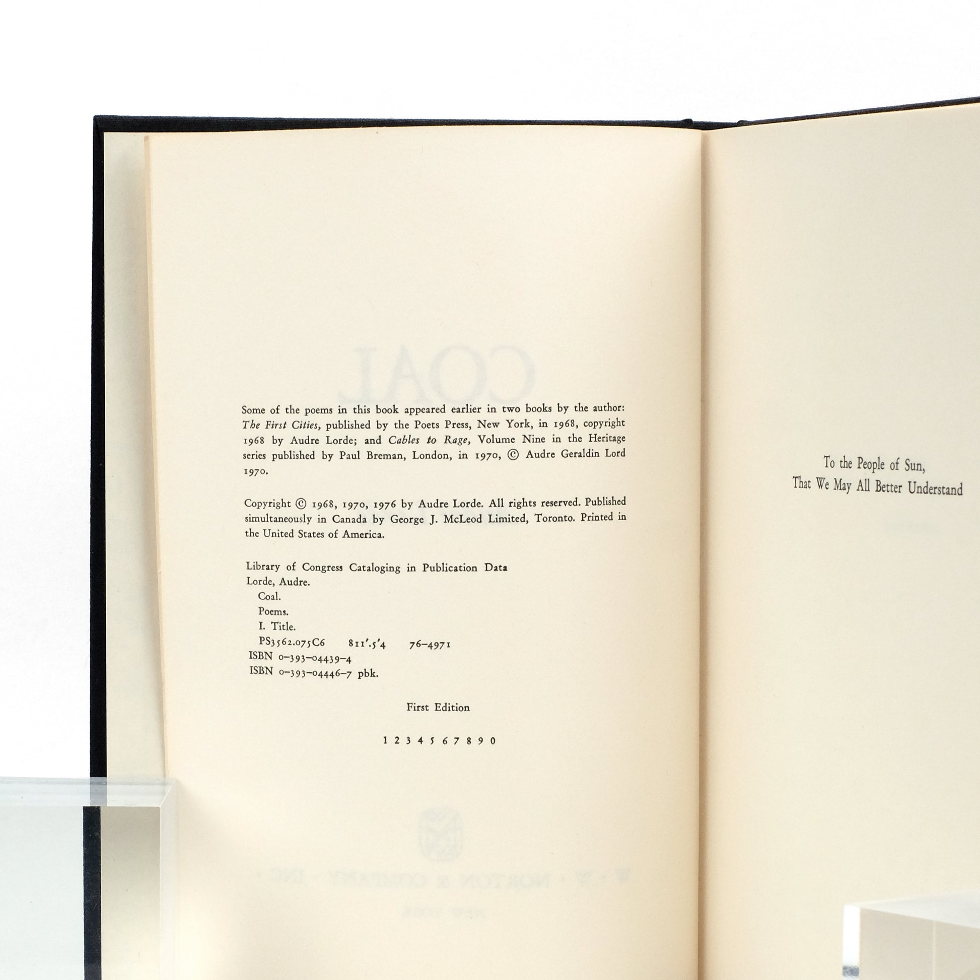 Lovely first edition copy of this collection of verse by American poet Audre Lorde (1934-1992), her first with a mainstream commercial publishing house. Lorde was angered by Norton's decision to use the rear jacket panel to advertise the work of poet Adrienne Rich, a friend whose greater success aroused a competitive streak in Lorde; though Lorde ultimately stuck with Norton, she complained about the decision to her agent, who thereafter included a contract clause requiring approval for any advertisements for other authors (De Veaux, Warrior Poet : A Biography of Audre Lorde, p.162). Jacket design by Rus Anderson.