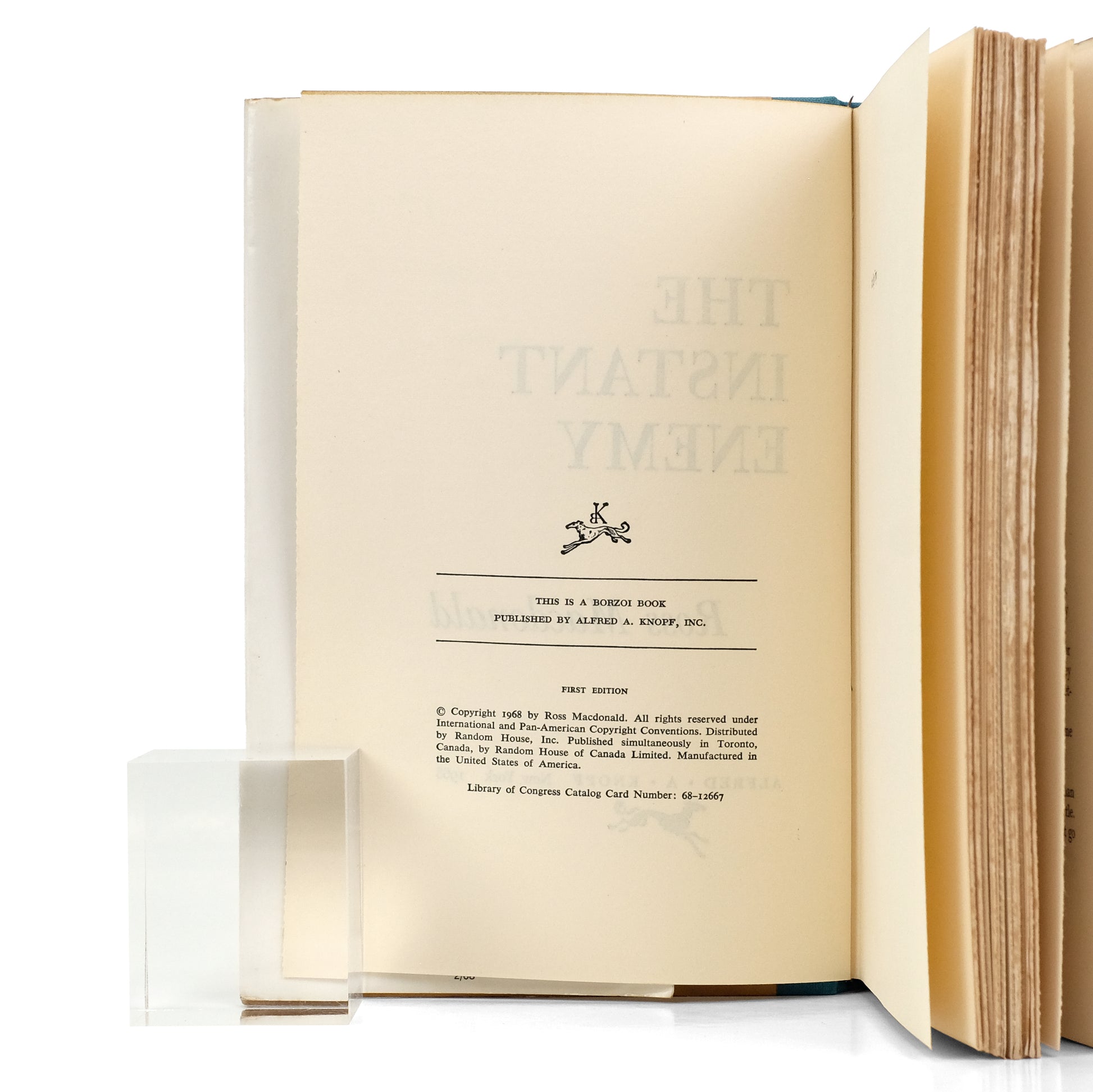 NY: Alfred A. Knopf, 1968. First edition. 227pp. Mustard boards backed with blue quarter cloth; blind-embossed motif to front board; silver spine titles; dust jacket. Some foxing to deckled fore-edge; faint foxing to endpapers; Very good in a price-clipped jacket, with two vertical creases to rear flap, light rubbing.