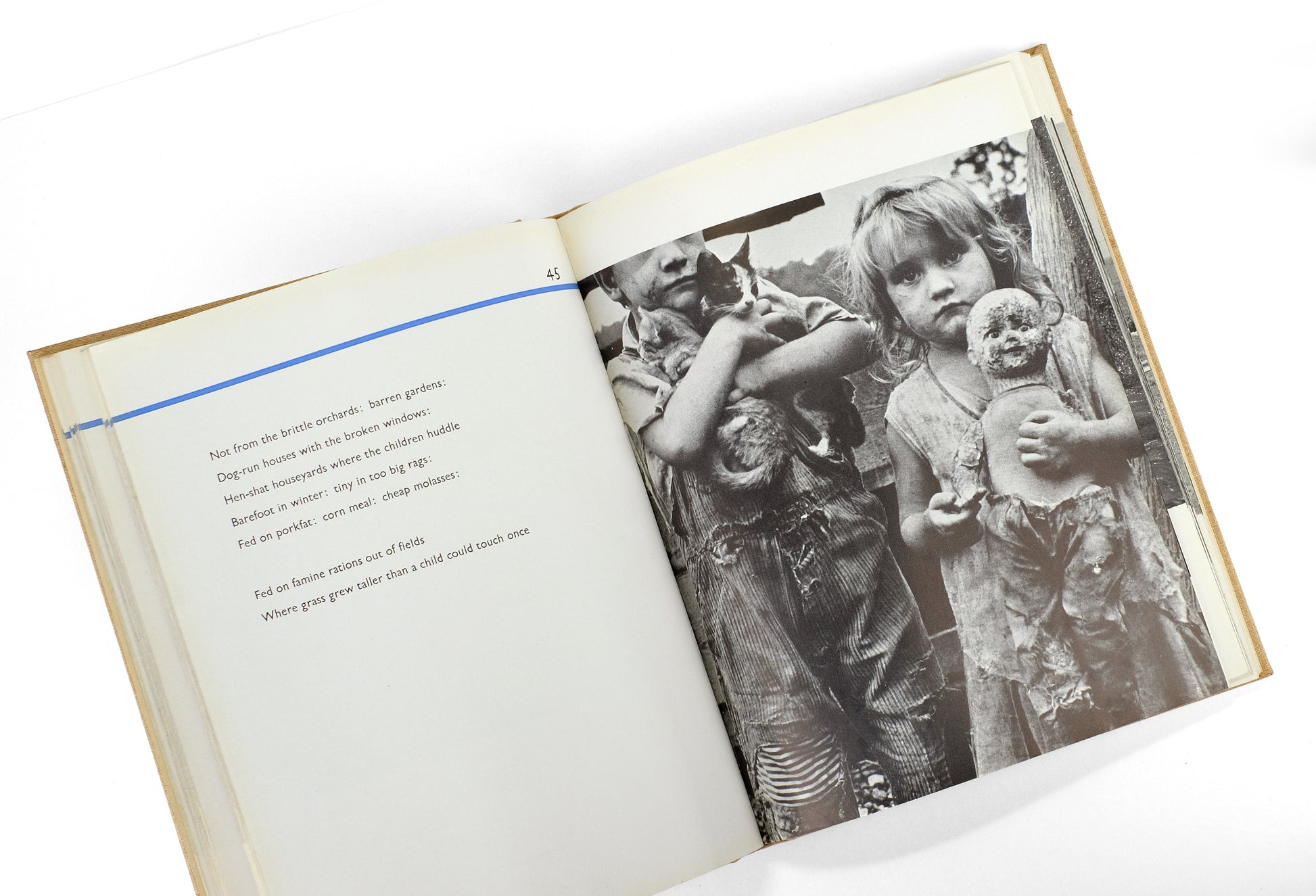 A book-length poem by Archibald MacLeish (1892-1982) accompanied by 88 black-and-white photographs mostly by Farm Security Administration photographers, including Dorothea Lange, Arthur Rothstein, Walker Evans, and Ben Shahn. One of the iconic depression-era photobooks, which treads "a narrow line between documentary, propaganda and report" ( Parr & Badger, v1, p.180) examining the rapacious relationship between Americans and the lands they have come to inhabit.