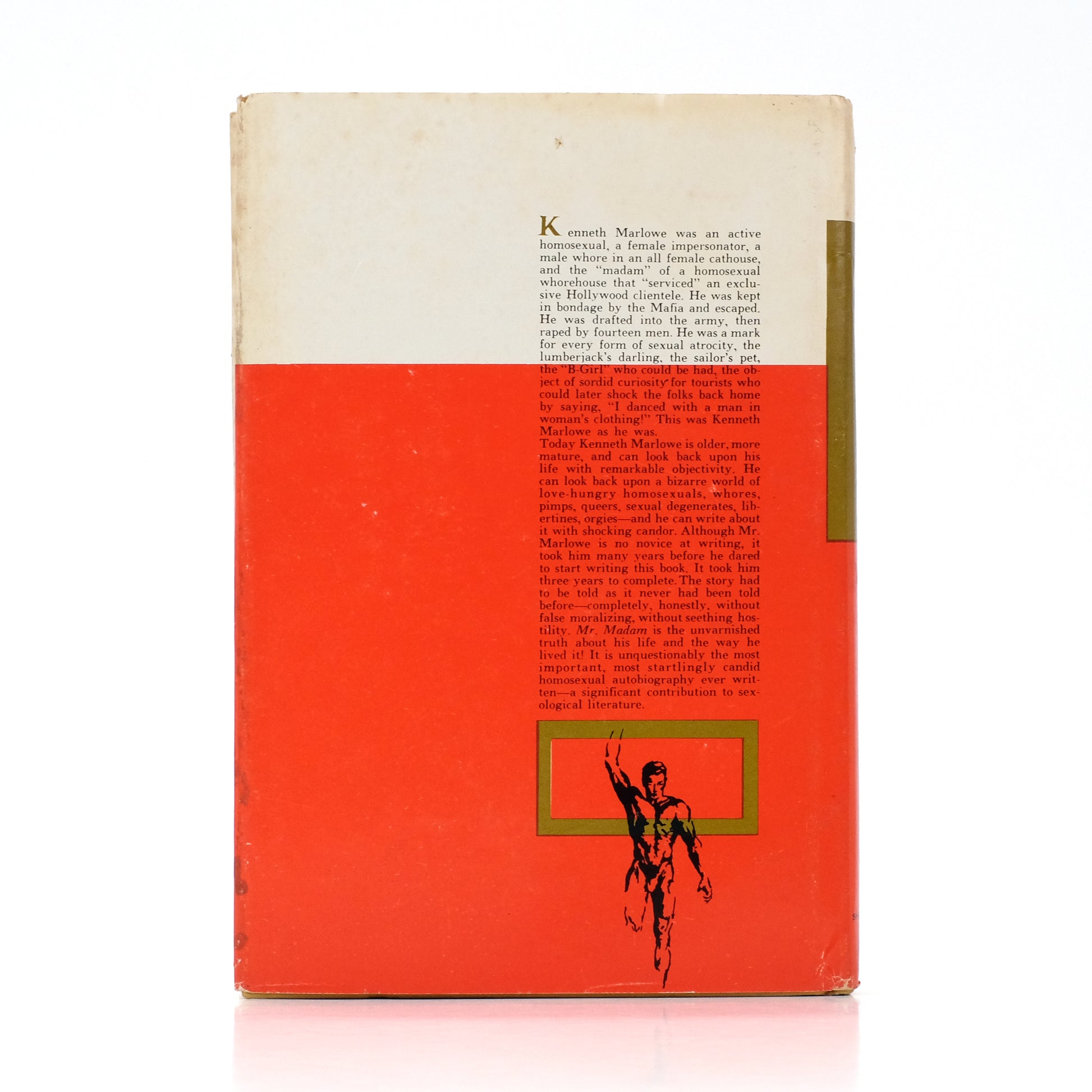 Autobiography of American exotic dancer, hairdresser, and LGBTQ advocate Kenneth Marlowe (1926-1980), who in 1975 transitioned to Katherine "Kate" Marlowe Bies; details, among other things, Marlowe's sexual coming of age as a gay man, career as a female impersonator, and life as a sex-worker, particularly as the "madam" of a male brothel. Introduction by Leonard A. Lowag; foreword by T. C. Jones. N.B. This copy apparently a later state of the first edition, differing from other copies we've handled in its textured paper boards (as opposed to gray cloth) and glued binding.
