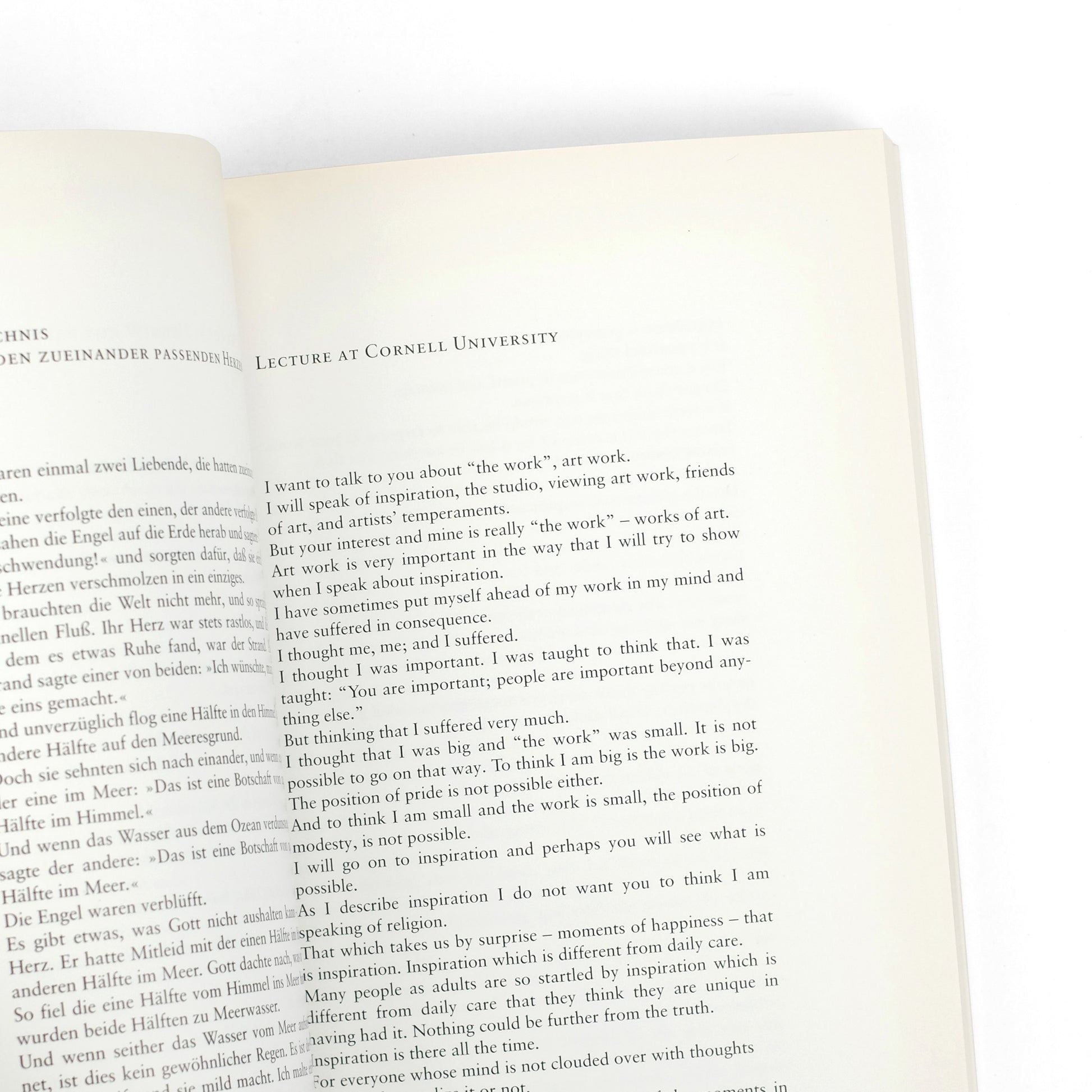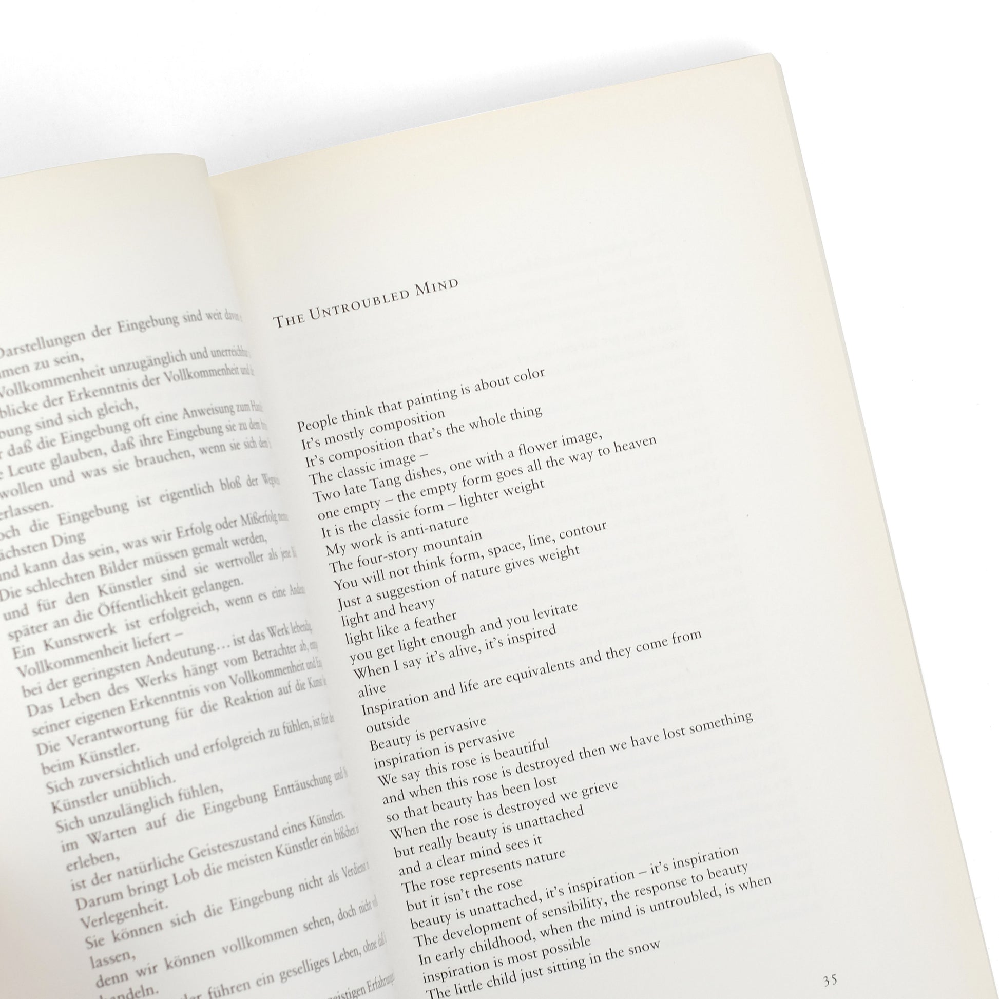 Collection of fourteen texts by Canadian-American painter Agnes Martin (1912-2004). Edited and with a foreword by Dieter Schwarz. With eight color plates reproducing paintings by Martin; notes on texts and list of illustrations at rear. Published to accompany the exhibition "Agnes Martin: Paintings and Works on Paper, 1960-1989" at the Kunstmuseum Winterthur, January 19 to March 15, 1992. All text in English and German.