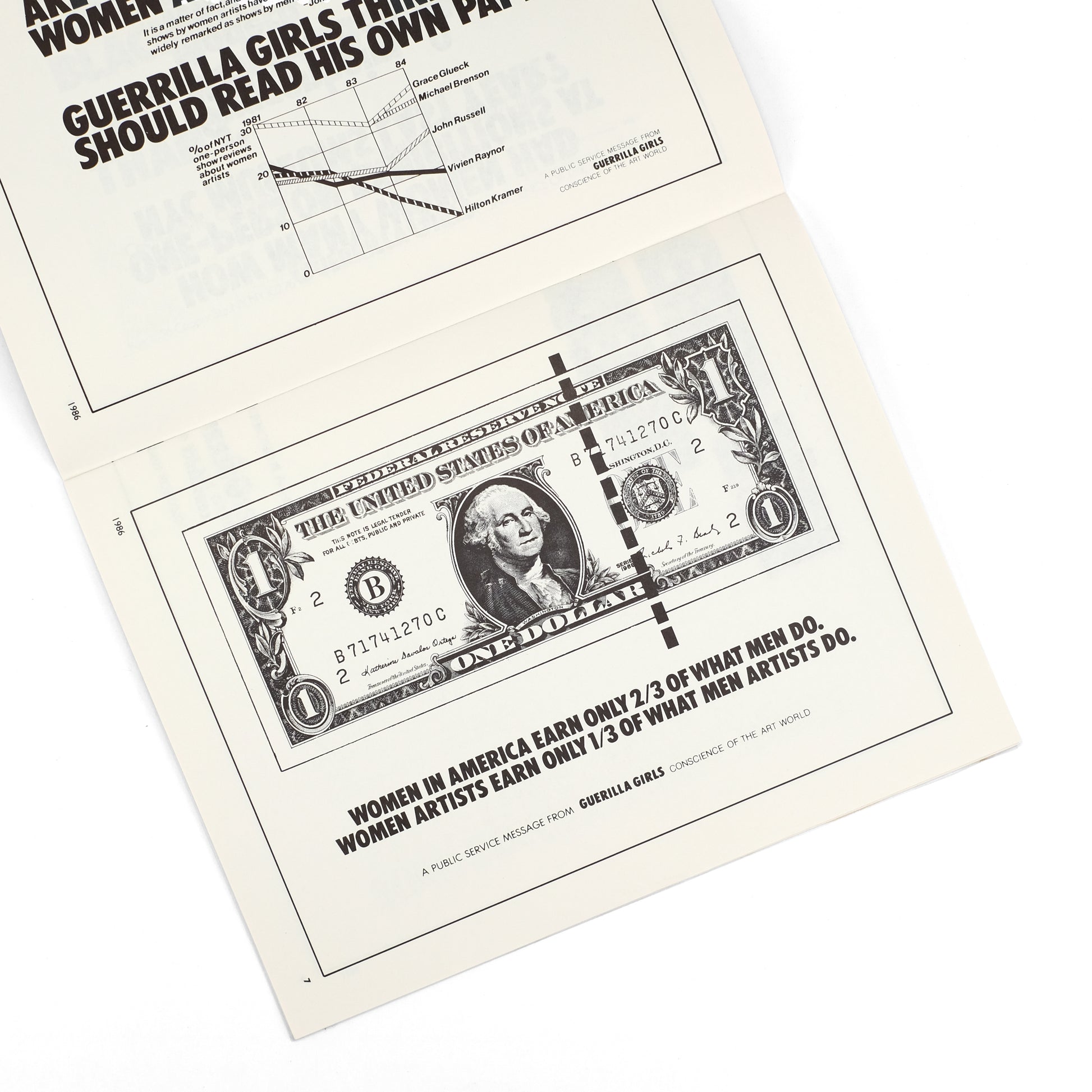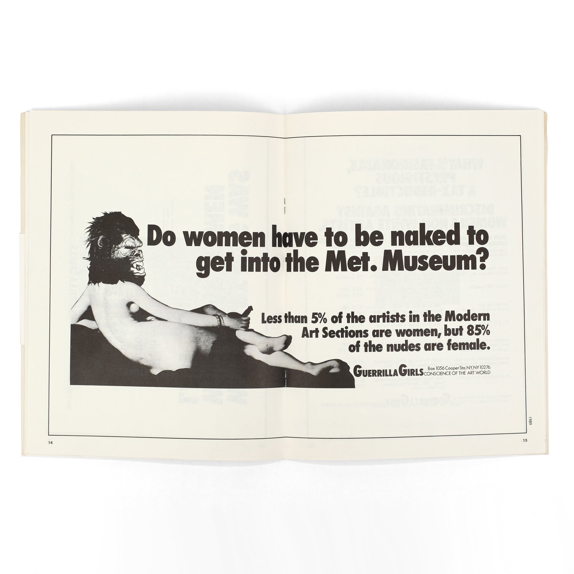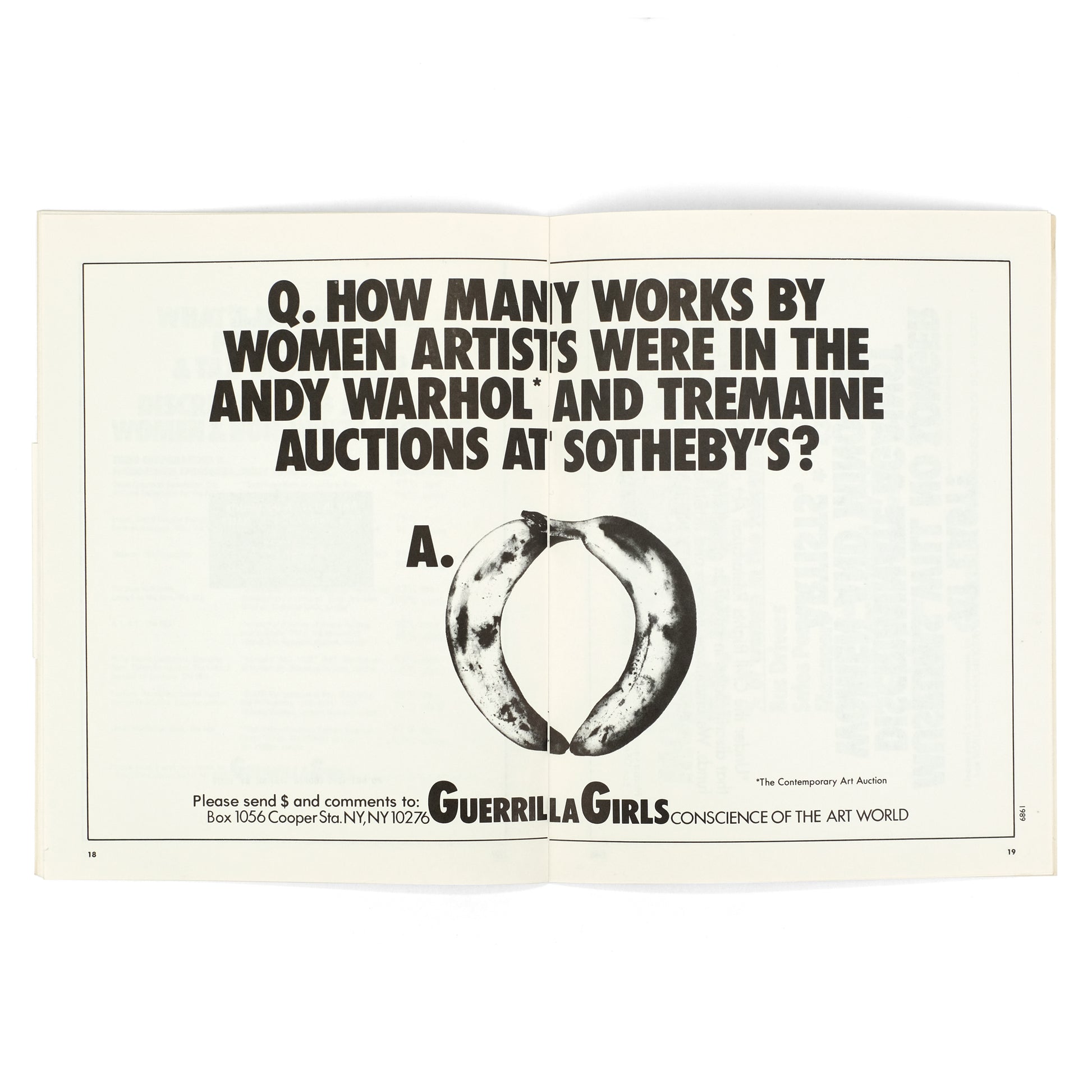 Single issue of this arts periodical published by Italian-born artist Lucio Pozzi (b. 1935). This issue guest-edited by American feminist art collective Guerrilla Girls, with contents consisting entirely of reproductions of their posters/postcards, and a brief introduction in reproduced holograph text.