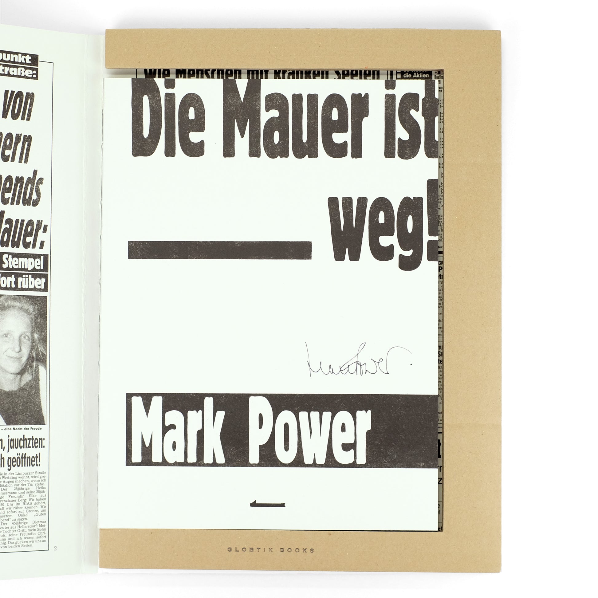 Signed by Power to title page. Self-published collection of black-and-white photographs shot by British photographer Mark Power (b. 1959) during the fall of the Berlin Wall in 1989. With an introductory essay by Power. Lauded by photographer Alec Soth as his favorite photobook of 2014.