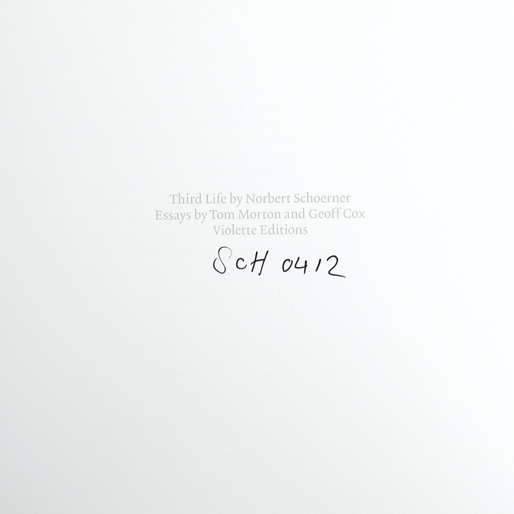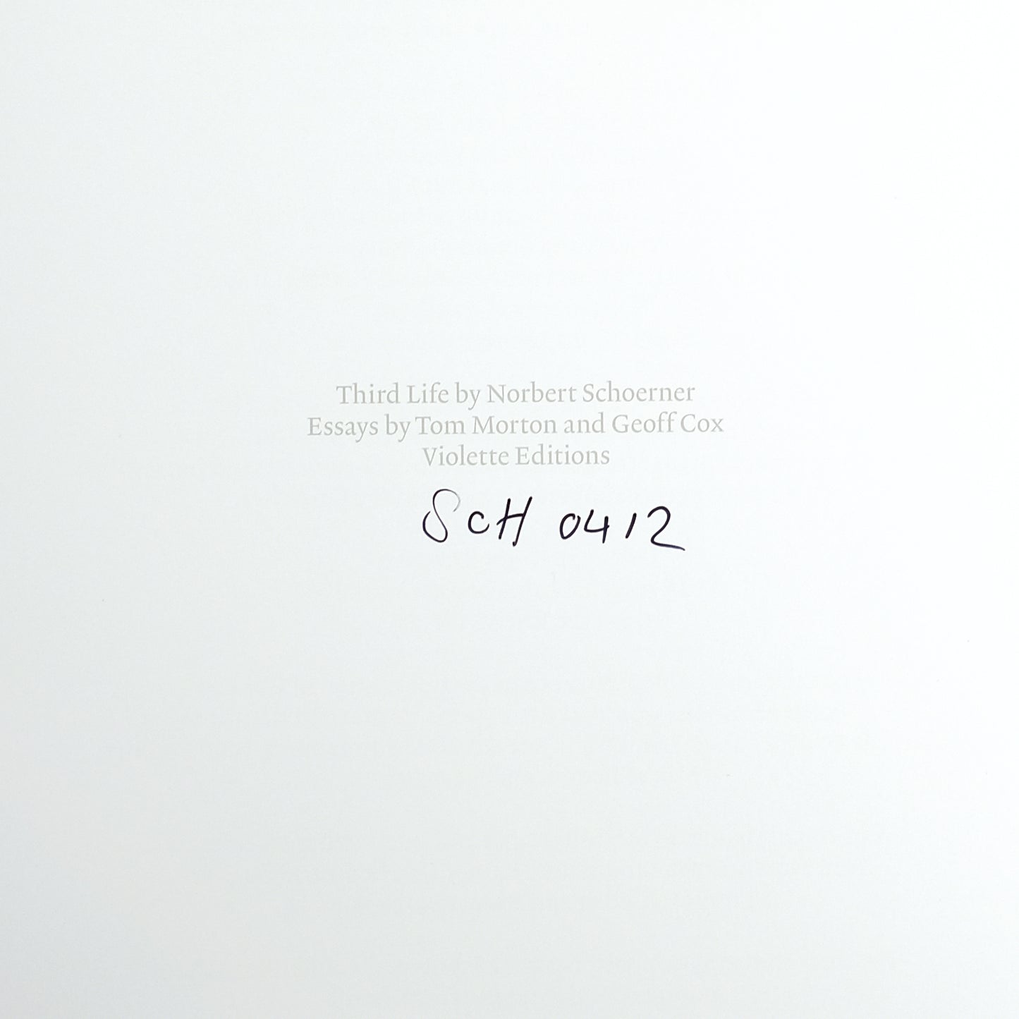London: Violette Editions, 2012. First edition. 152pp; color plates. Oblong 4to. Photo-illustrated boards over wraps, with exposed spine. Mild toning to edges of leaves, else fine. Signed (and numbered?) by Schoerner to title page: "SCH 0412."