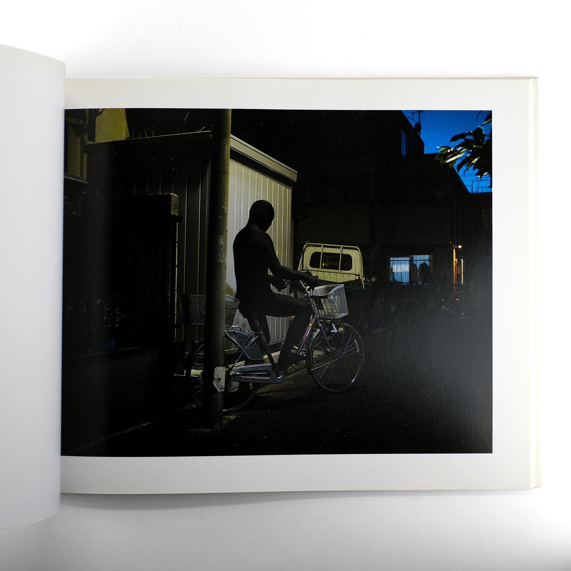 Vibrant color photographs of landscapes, urban environments, and interiors, largely unpeopled save for the recurring presence of figures clad in black bodysuits. "Assembled as a cinematic narrative, the book is a collection of Schoerner’s work produced between 2005 to 2012" (photographer's website). With a introduction by Tom Morton, and an essay by Geoff Cox.