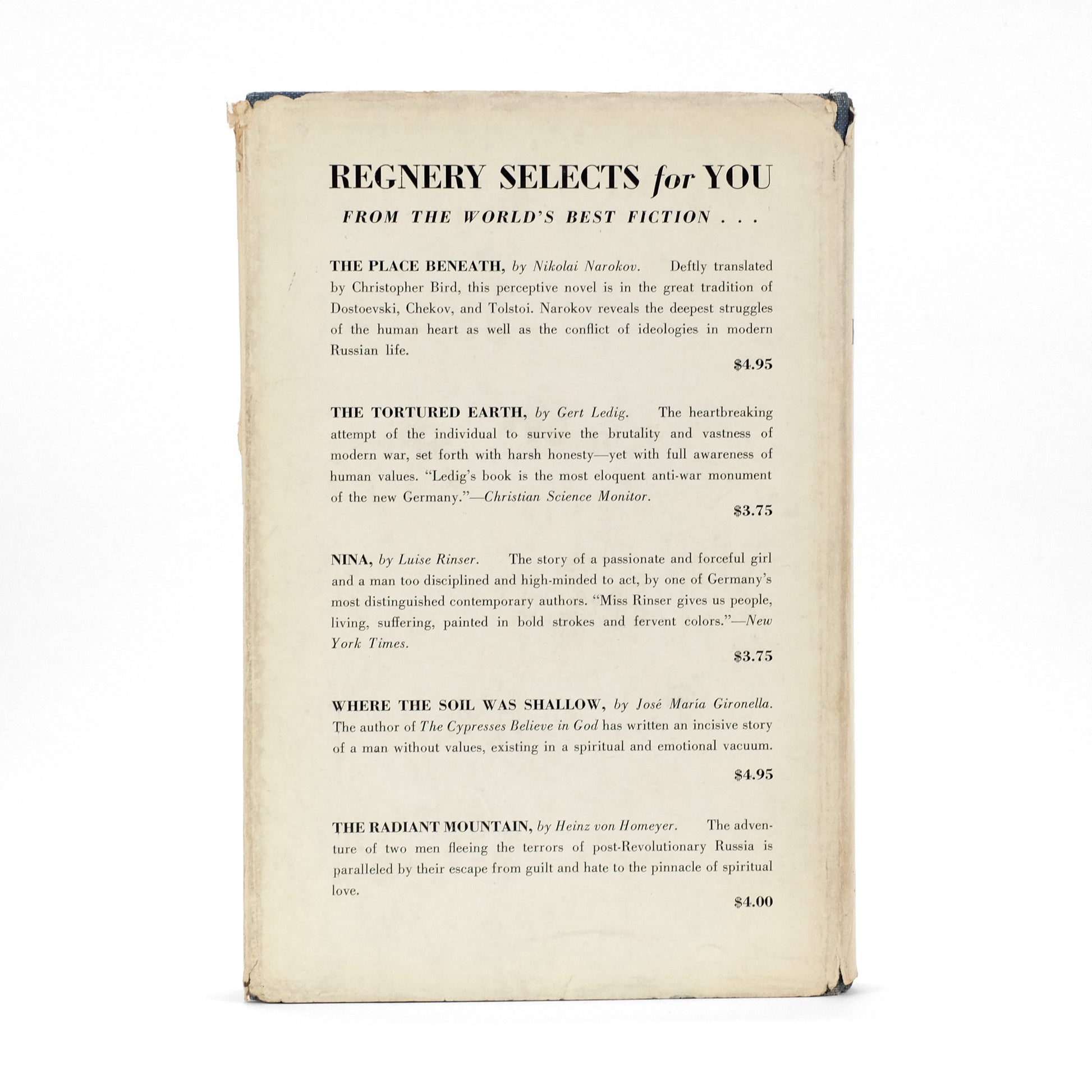 Chicago: Henry Regnery Company, 1957. First edition. vi, 248pp. Blue cloth; dust jacket. Very minor bumping to board corners; light wear at spine ends; mild toning to edges of textblock. Unclipped jacket with chips at spine ends and tips, moderate rubbing; front flap hinge split halfway down from top. Very good in a fair to good jacket.