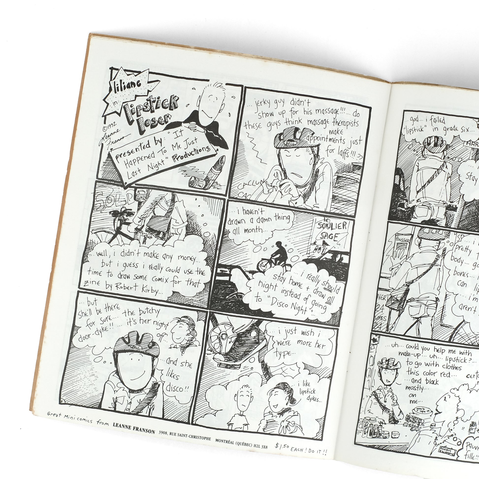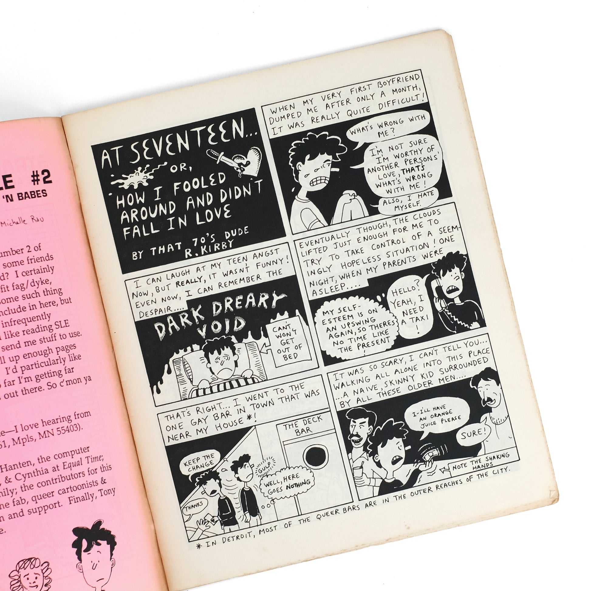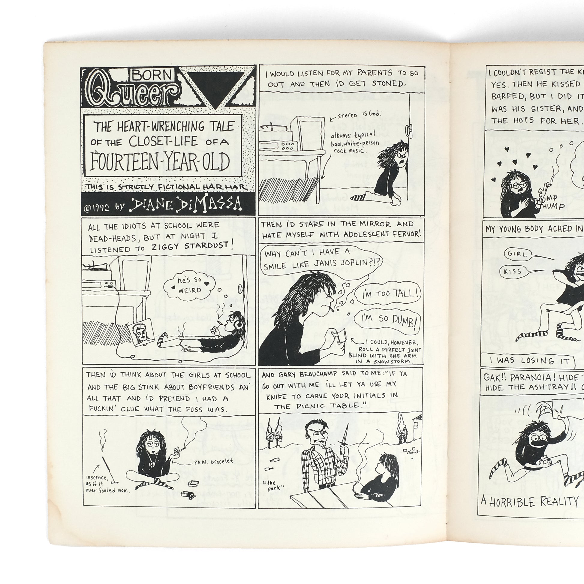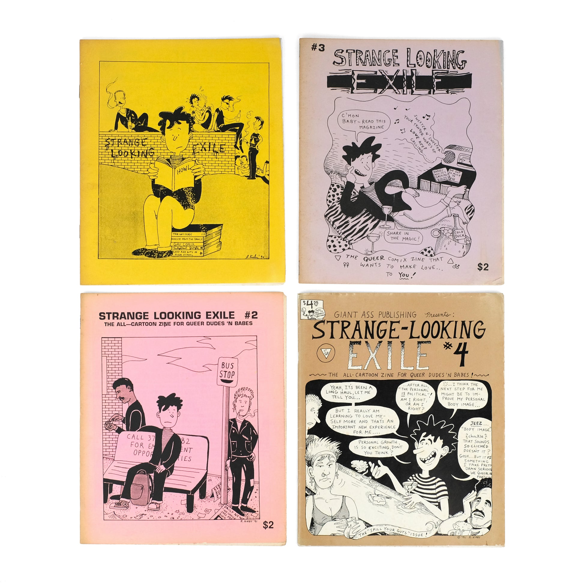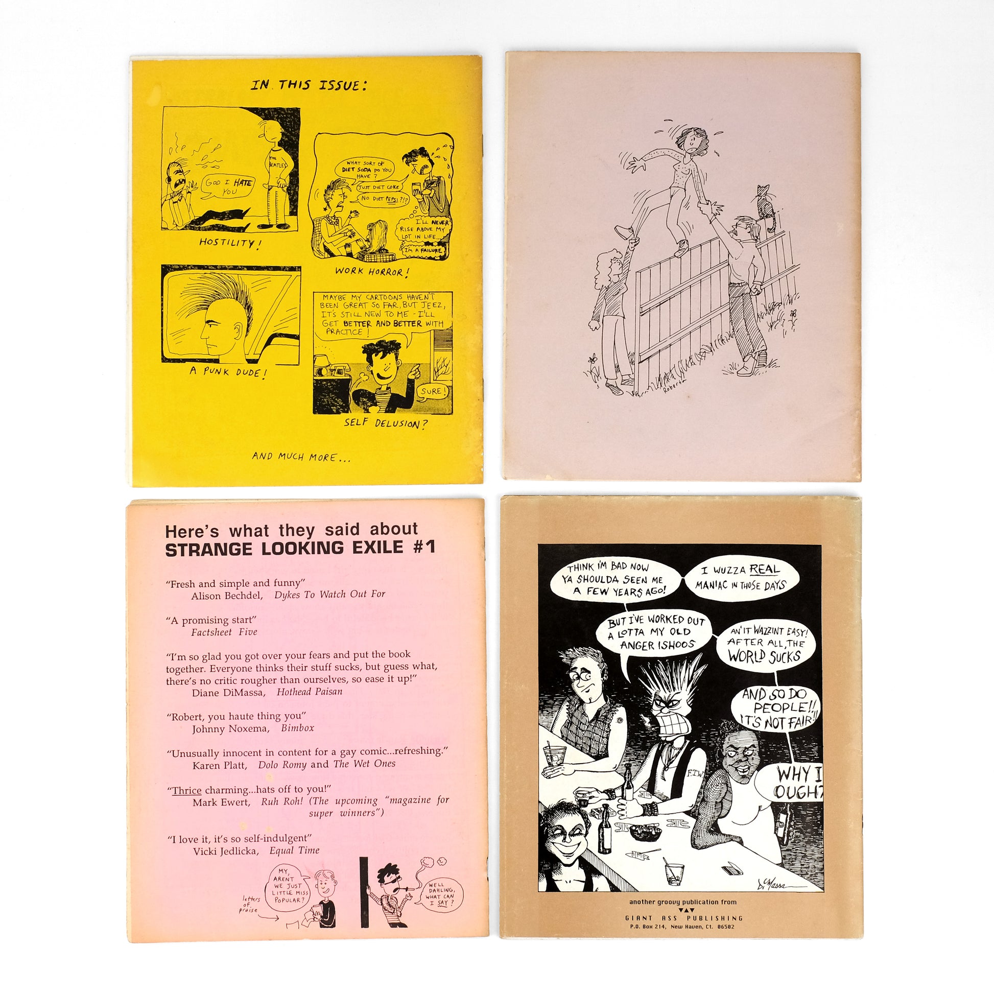 First four (of five total) issues of this anthology queer comics zine. Edited and with contributions throughout by celebrated American cartoonist Robert Kirby (b. 1962); notably his first serial publication, predating his long-running syndicated comic Curbside, and other anthology zine series including Boy Trouble. Contents entirely comic strips exploring with humor and honesty various aspects of the queer experience. First issue features work exclusively by Kirby; subsequent issues with contributions from Diane DiMassa, Jeffrey Kennedy, Nick Leonard, Junebug, Nick Leonard, Roxxie and Michelle Rau, Roberta Kennedy, Melissa Rassmussen, et al. A charming and important publication, which played an outsize role in ushering in a new wave of 1990s queer comics. Scarce in the trade; OCLC locates eight institutions holding copies.