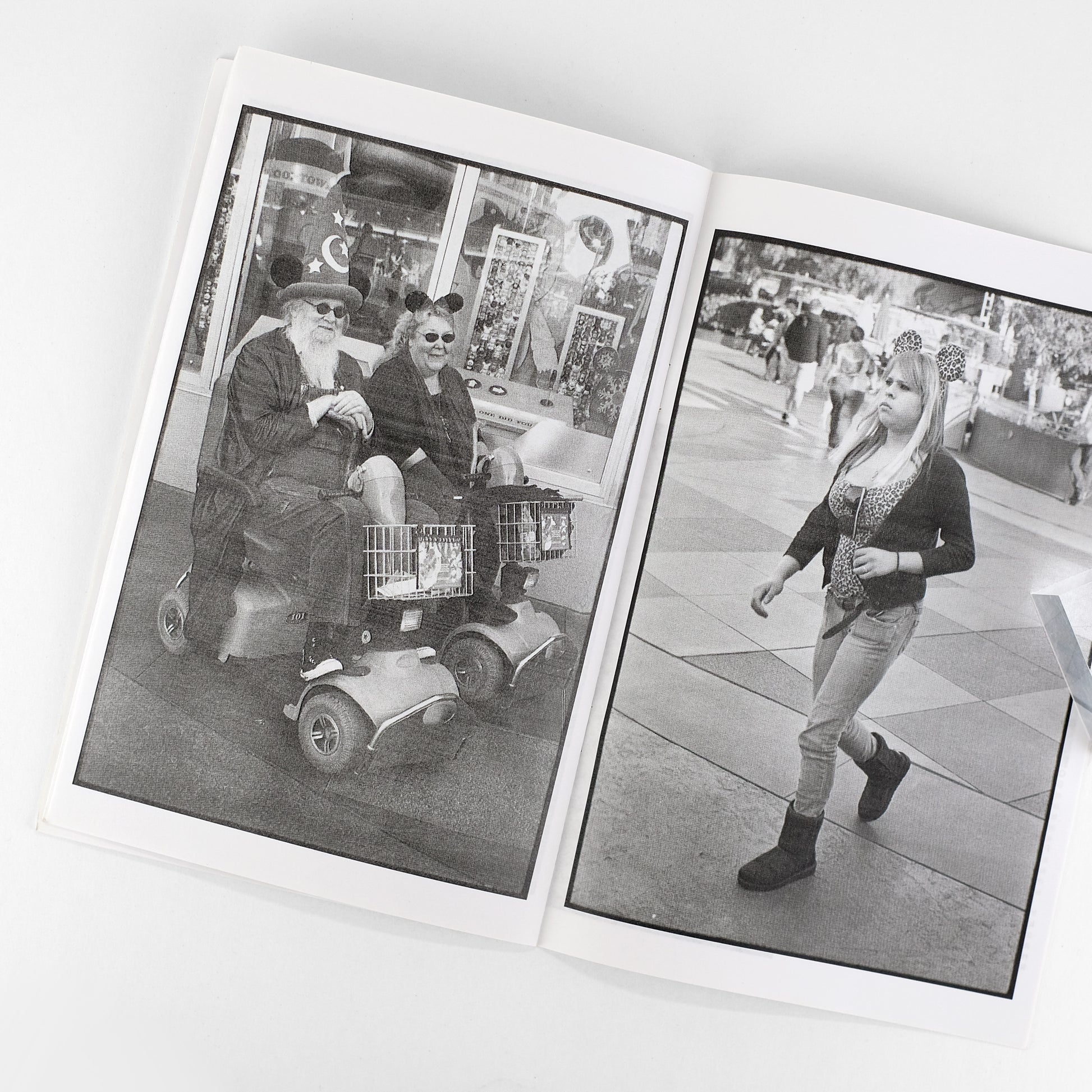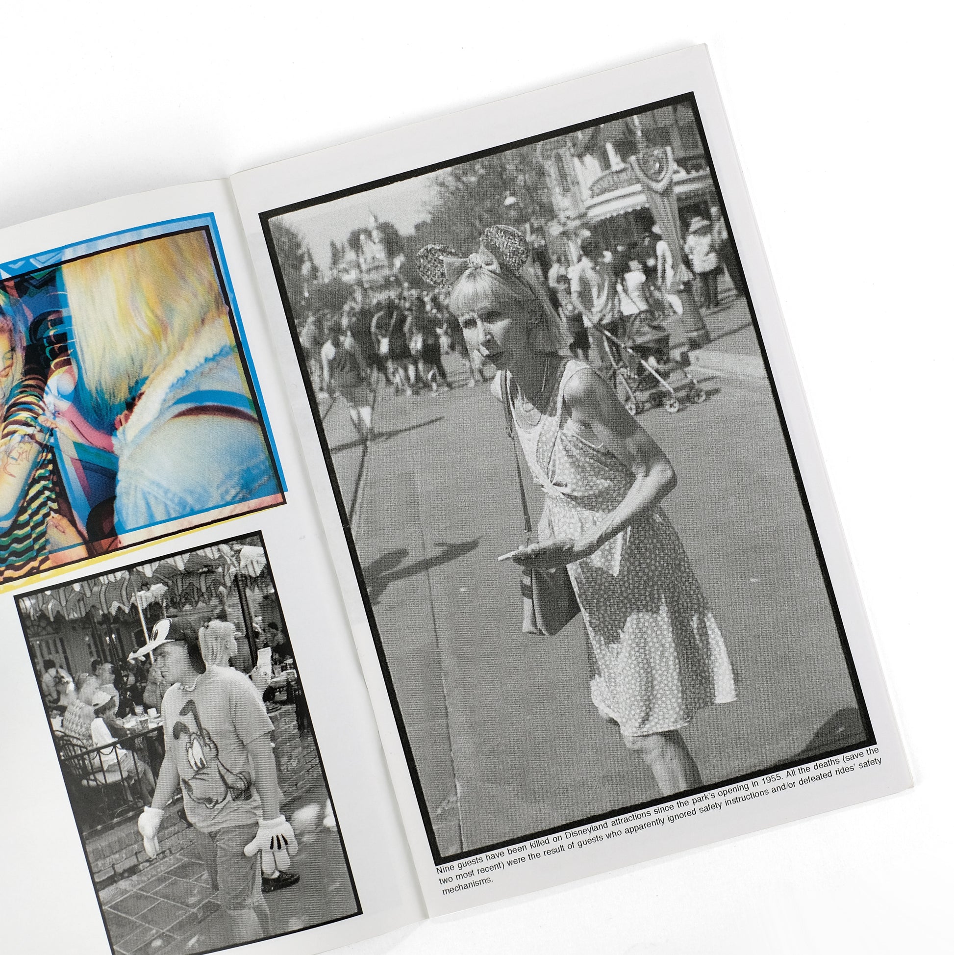Photozine by American skateboarder, artist, and photographer Ed Templeton (b. 1972); black-and-white images shot at the titular theme park between 1995 and 2015, and accompanied with text from a Snopes.com article on deaths at Disneyland.