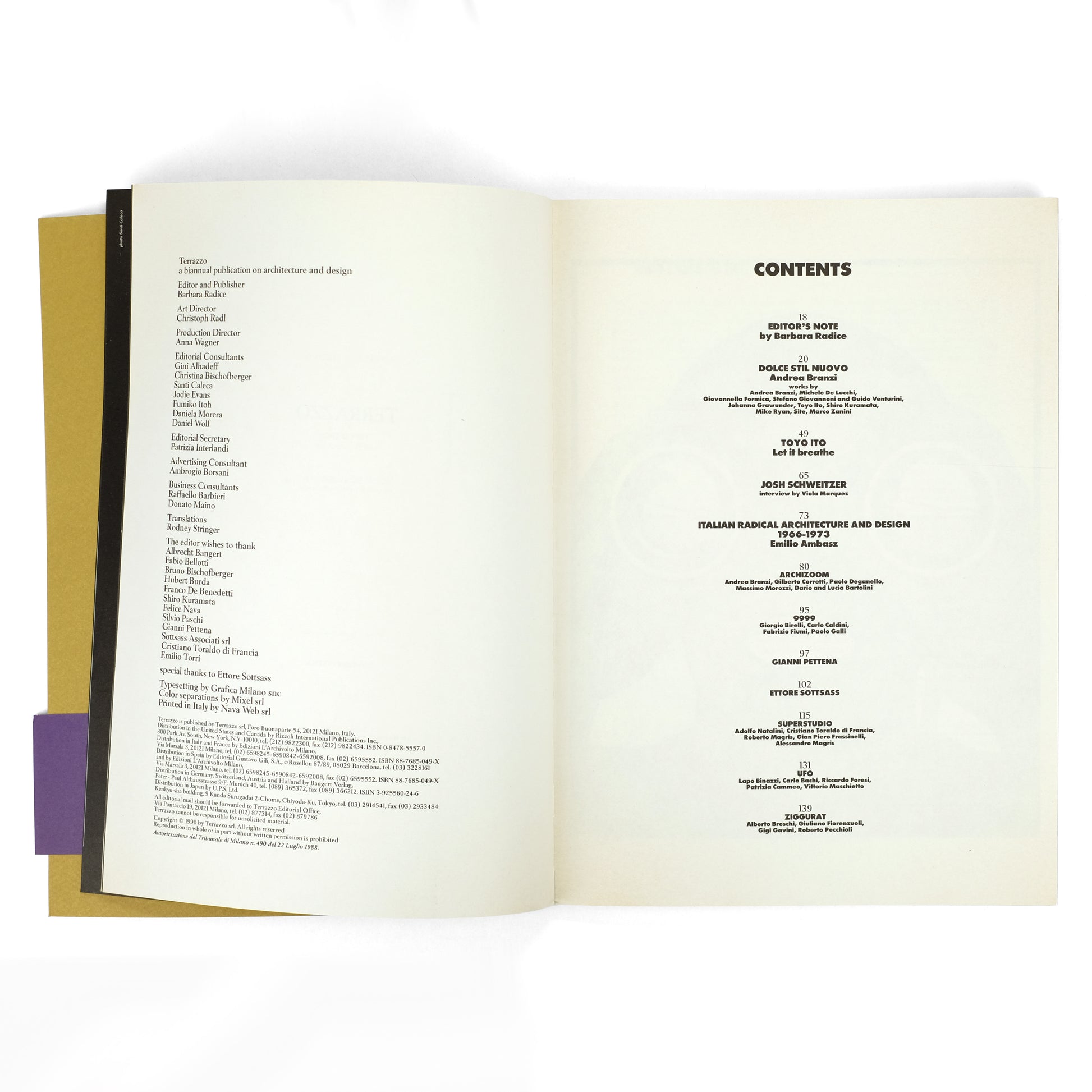 Fifth issue of this lavishly illustrated biannual periodical surveying the worlds of contemporary architecture and design. With features by and about Andrea Branzi, Toyo Ito, Josh Schweitzer, Emilio Amasz, Archizoom, 9999, Gianni Pettena, Ettore Sottsass, Superstudio, UFO, Zigurrat, etc.