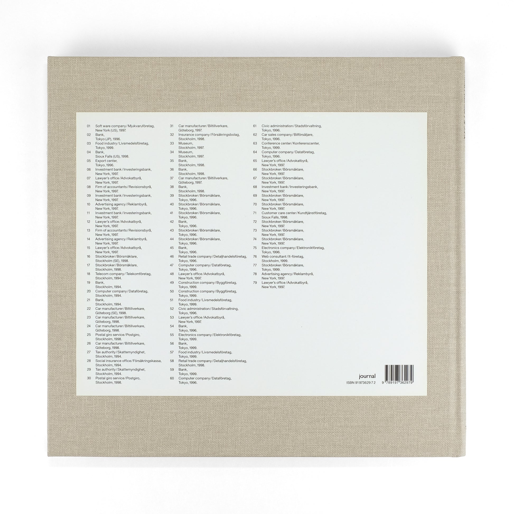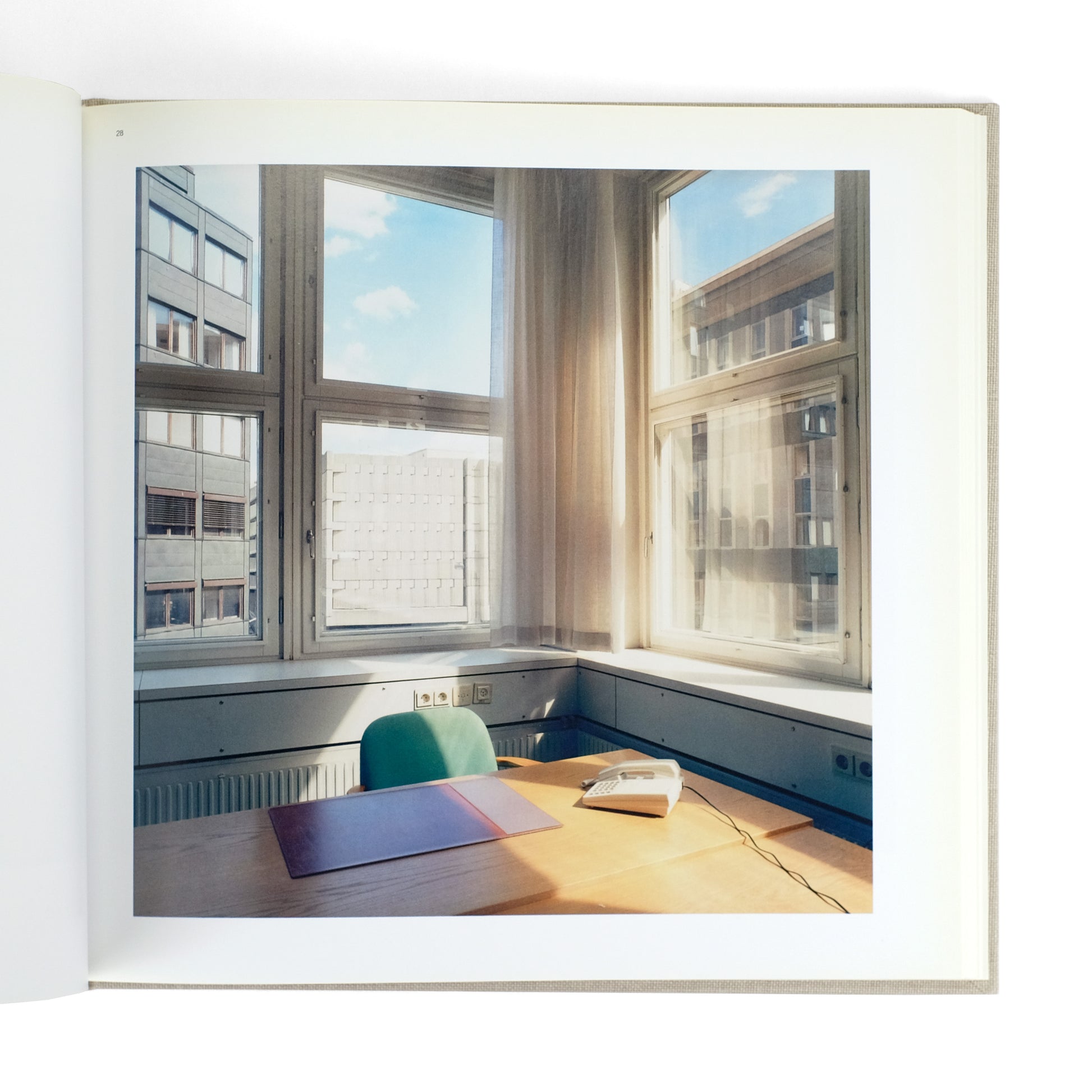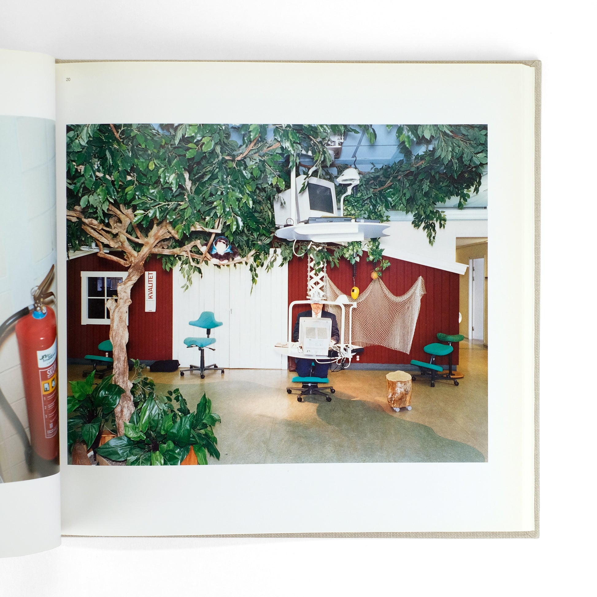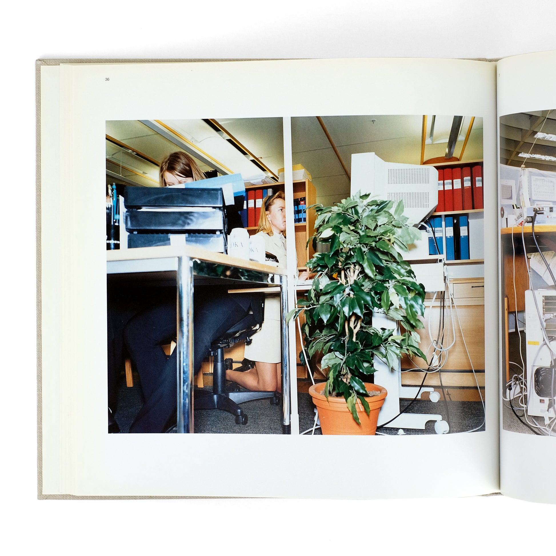 Color photographs by Swedish photographer Lars Tunbjörk (1956-2015) of white-collar office environments in Stockholm, New York, and Tokyo; a fascinating study, finding strange beauty in these otherwise cramped and spiritually denuded spaces. Parr & Badger, v2, pp. 318-319.