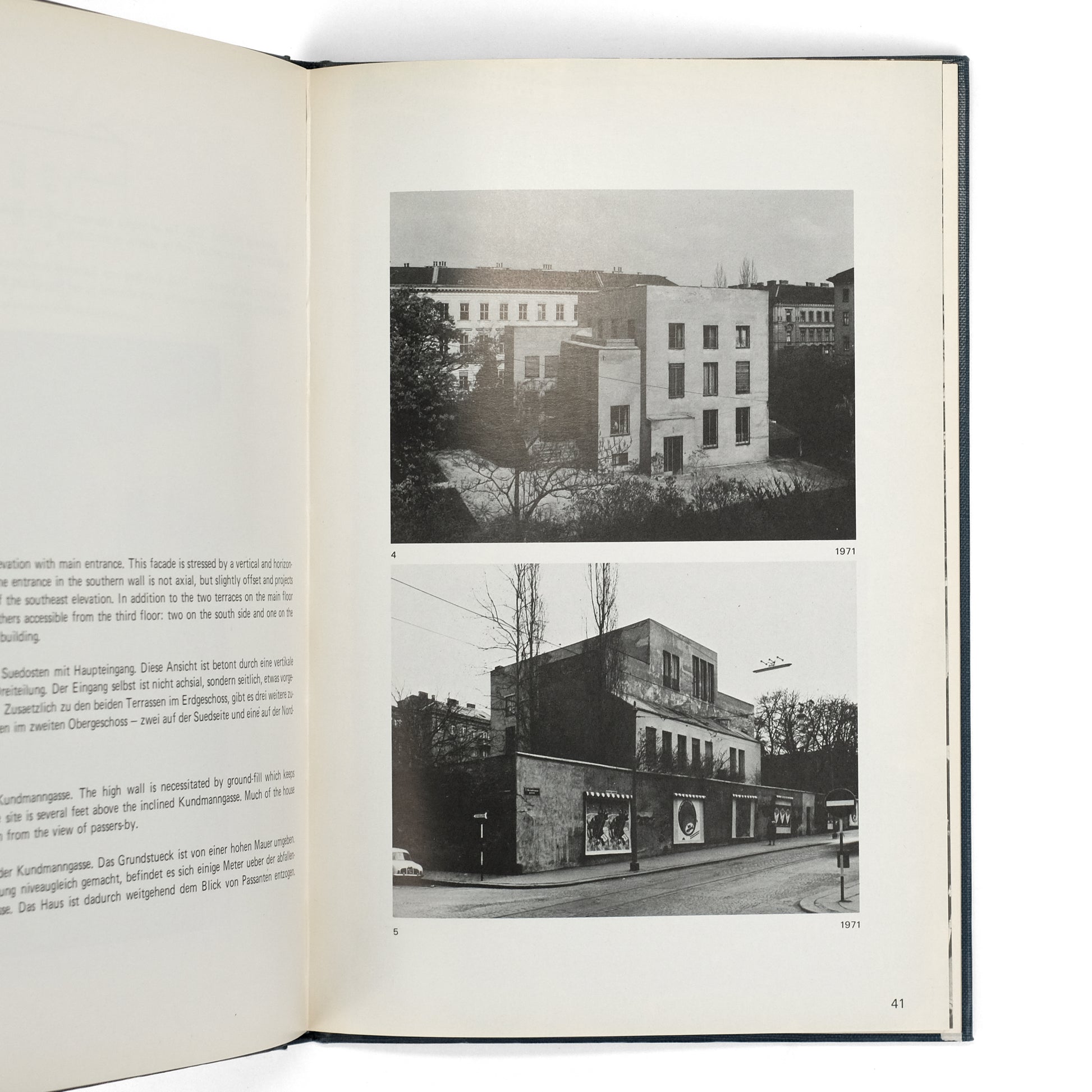 An architectural documentation of the Wittgenstein House in Vienna, as designed in 1927-28 for his sister by Austrian-born philosopher Ludwig Wittgenstein (1889-1951). Following its 1972 designation as a national monument by the Vienna Landmark Commission, the house was restored in 1973. Illustrated-throughout in black-and-white, including three gatefold leaves of building/floor plans. With text in both German and English by Bernhard Leitner, and excerpts from chapters V and VI of the Family Recollections written in the early 1940s by Hermine Wittgenstein. This publication originally issued in softcover format in 1973 by the Nova Scotia College of Art and Design; this, presumably, the first hardcover edition.
